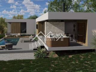 Poreč umgebung, baugrundstück mit genehmigtem Projekt für einen modernen Bungalow zwischen Tinjan und Pazin