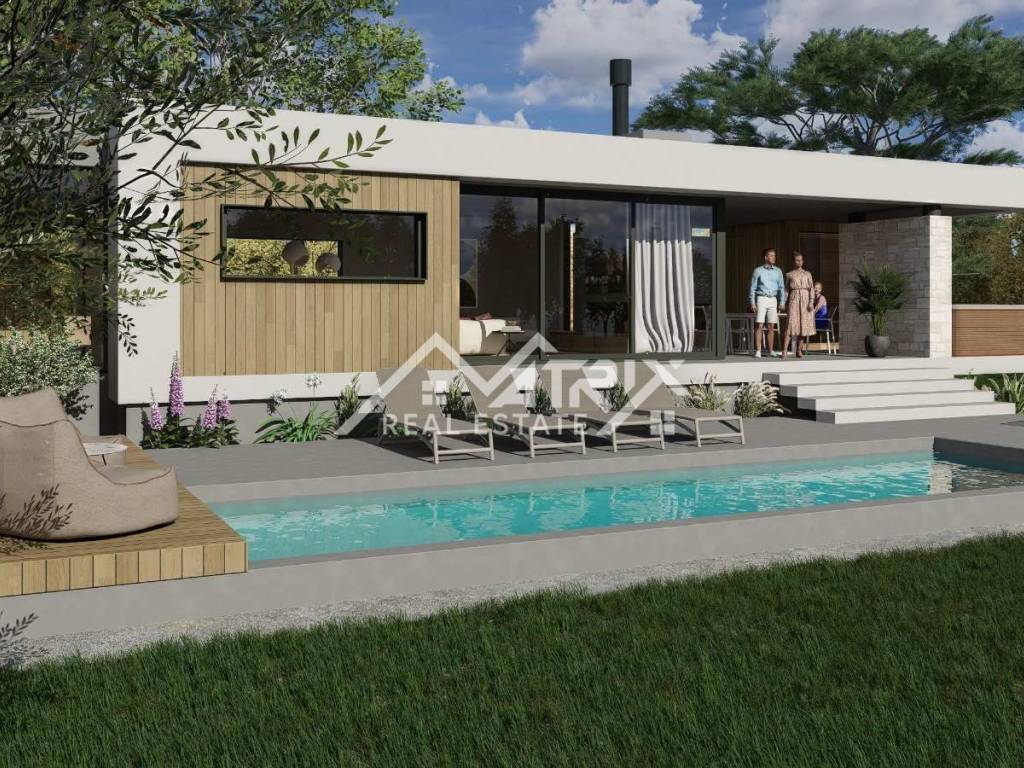 Zum Verkauf steht ein Baugrundstück mit genehmigtem Projekt für den Bau eines modernen Bungalows mit einem funktionalen und komfortablen Grundriss. Das geplante Haus verfügt über eine Gesamtwohnfläche von 113 m², zusätzlich Terrassen und eine Sonnenterrasse mit einem 32 m² großen Pool. Das Design umfasst drei Schlafzimmer, ein großzügiges Wohn- und Esszimmer, zwei Badezimmer und eine moderne Architektur, die sowohl für Familien als auch für die touristische Vermietung ideal ist.