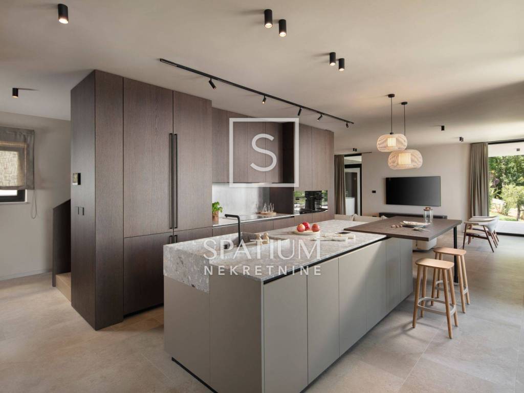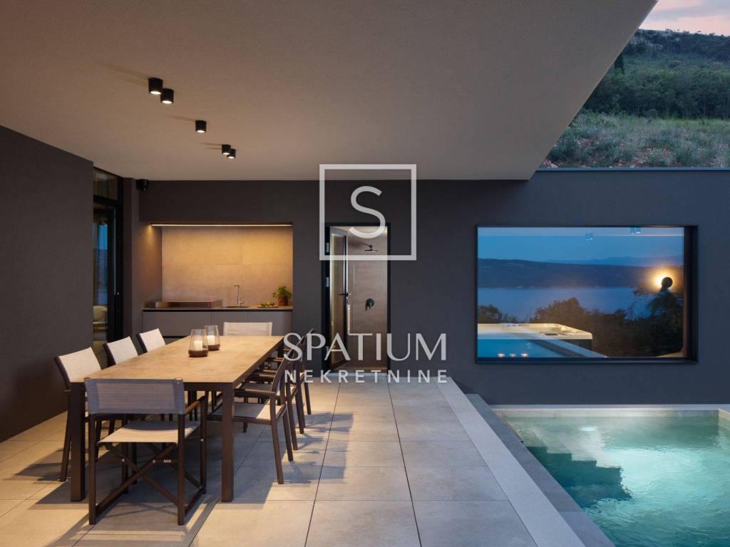 LABIN – UMGEBUNG: In ruhiger und diskreter Lage in unmittelbarer Nähe von Labin bieten wir Ihnen diese moderne Villa von höchster Qualität an. Sie richtet sich an Käufer, die Eleganz, Komfort und mediterranes Lebensgefühl suchen. Das Anwesen befindet sich auf einem großzügigen Grundstück von 1.281 m² und bietet einen freien Meerblick, ein hohes Maß an Privatsphäre und eine durchdachte Architektur.