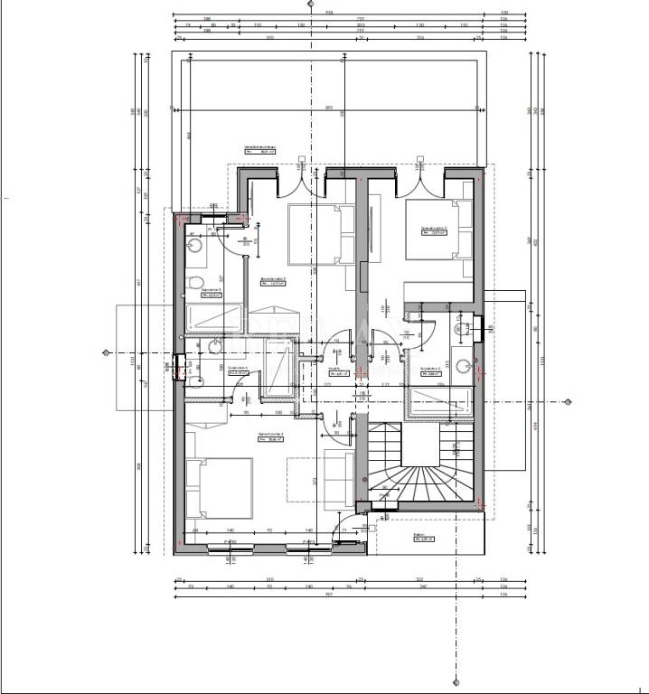 Die Innentreppe führt in den ersten Stock, wo sich drei Schlafzimmer befinden, jedes mit eigenem Bad und Balkon.