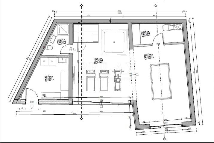 Im Nebengebäude gibt es eine Waschküche, ein Badezimmer, einen Raum mit Whirlpool und Sauna, einen Ruheplatz und ein Spielzimmer für die Kleinen und die Großen, die noch spielen.