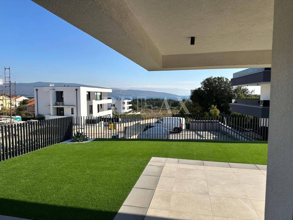 Zum Verkauf steht ein exklusives Apartment mit privatem Pool und Panoramablick auf das Meer, gelegen in einem hochwertigen Neubau in der Stadt Krk.