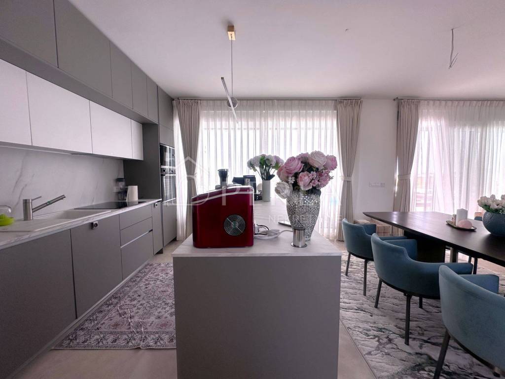 In bester Lage, 1 km vom Meer und Strand entfernt, erstreckt sich diese moderne Villa über mehrere Etagen (Erdgeschoss, Obergeschoss und Dachterrasse).