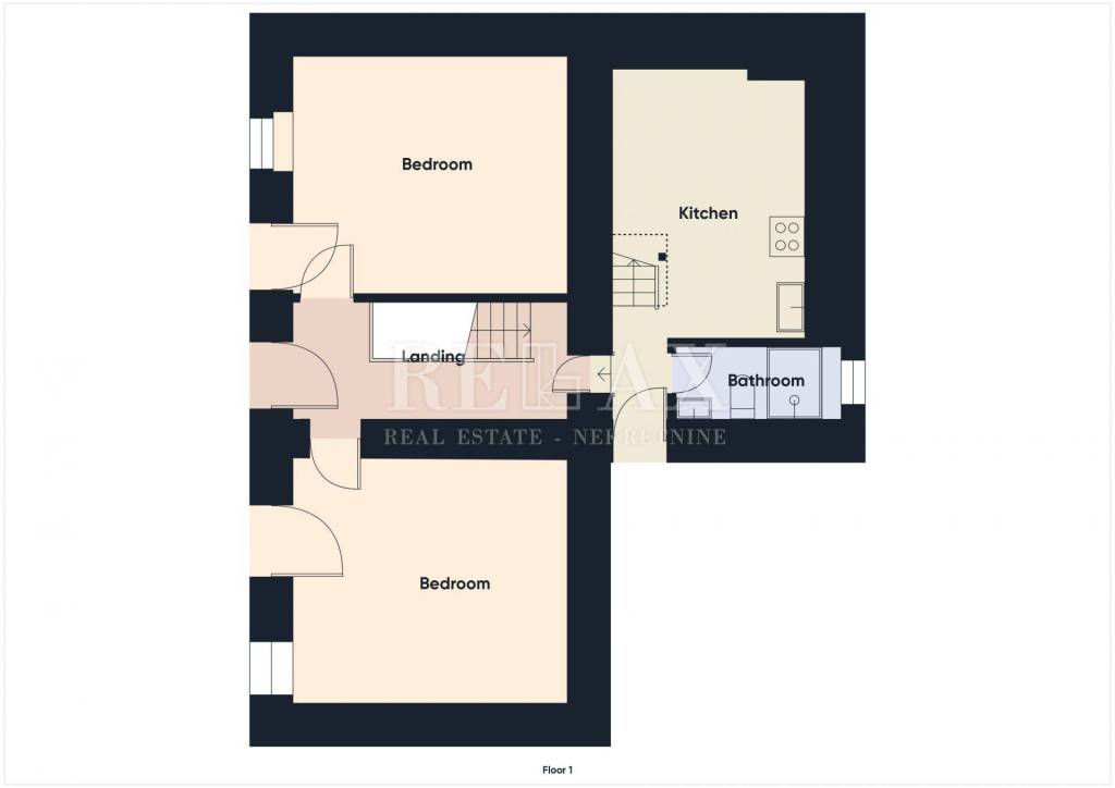 Das Erdgeschoss dieser charmanten Immobilie umfasst eine Küche mit praktischer Speisekammer, ein Badezimmer und ein Wohnzimmer, das mit dem Essbereich verbunden ist. Dieser Raum bietet eine gemütliche Atmosphäre für den täglichen Aufenthalt und geselliges Beisammensein.