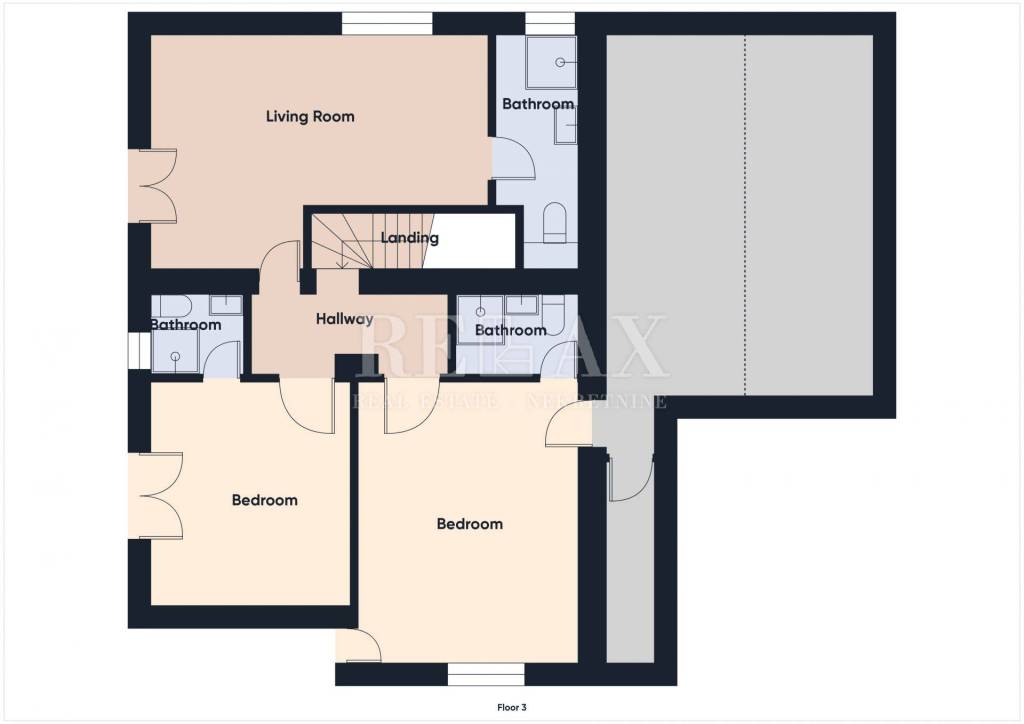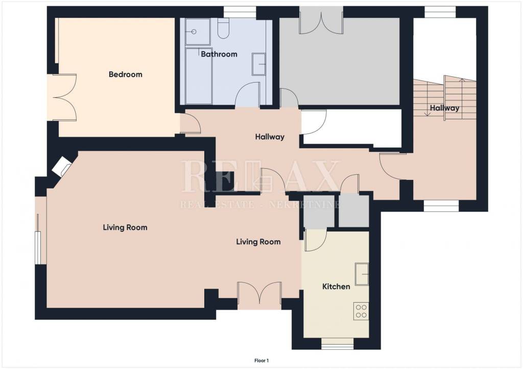 Im ersten Stock liegt eine großzügige Familienwohnung mit Wohnzimmer, Küche, Essbereich, zwei Schlafzimmern, Badezimmer und separatem WC – eine ideale Lösung für Eigentümer, die selbst in der Villa wohnen möchten.
