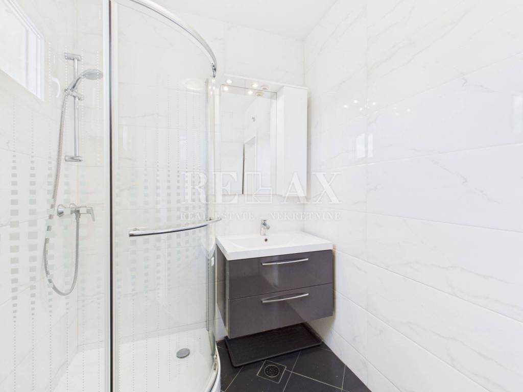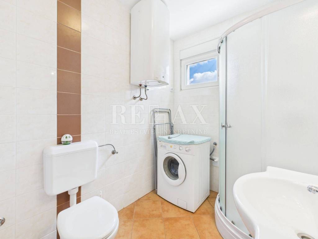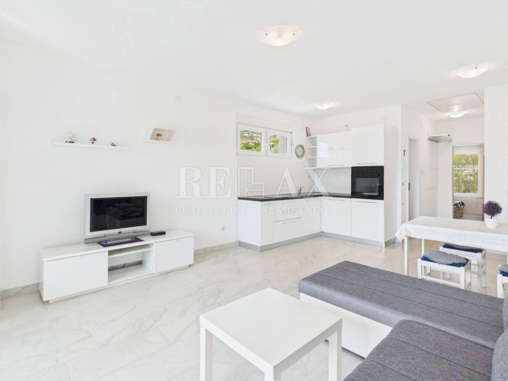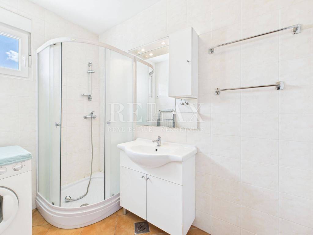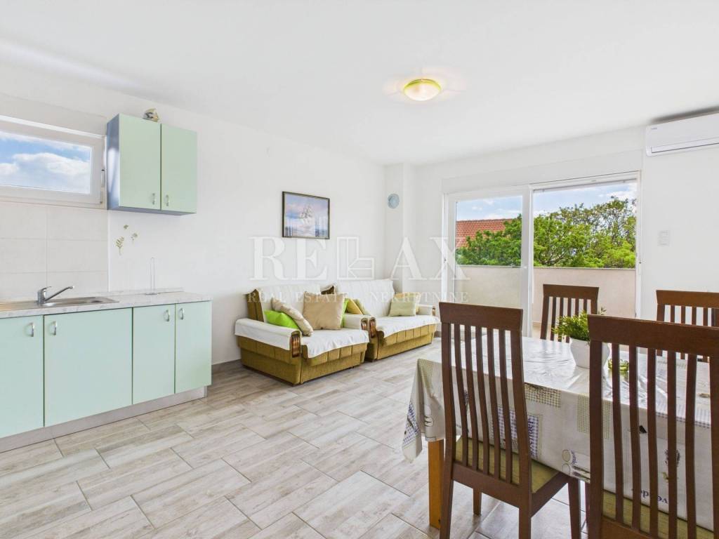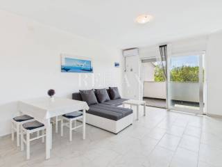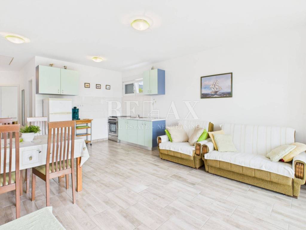 In ruhiger Lage in Povile, nur 400 Meter zu Fuß vom Meer und 350 Meter vom Ortszentrum entfernt, steht eine Wohnetage mit 83,81 m² Wohnfläche zum Verkauf, die aus zwei fast identischen Einzimmerwohnungen besteht. Diese Immobilie stellt eine ideale Investitionsmöglichkeit dar, geeignet für kurzfristige Vermietung oder den Umbau in eine großzügige Familienwohnung.