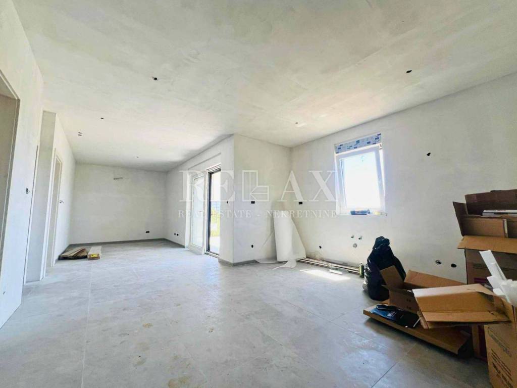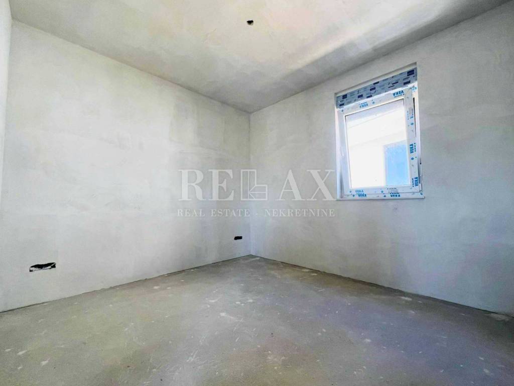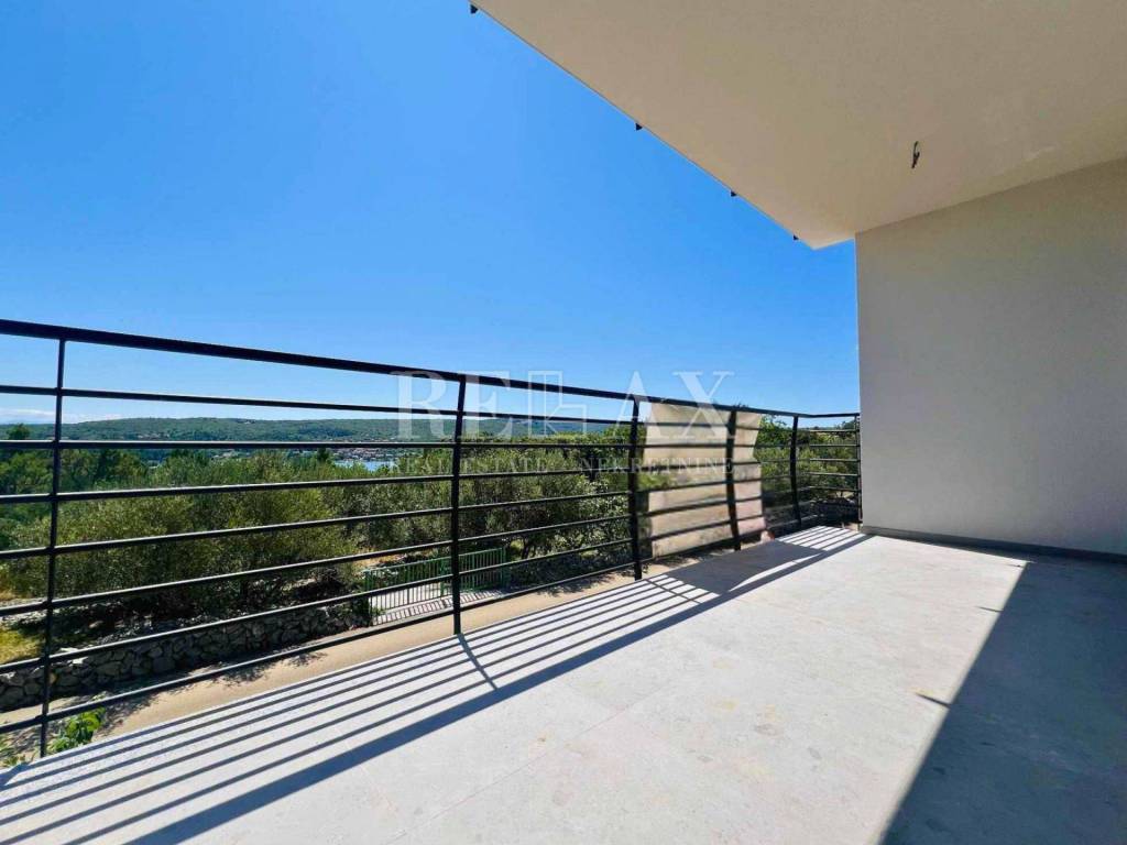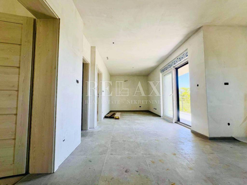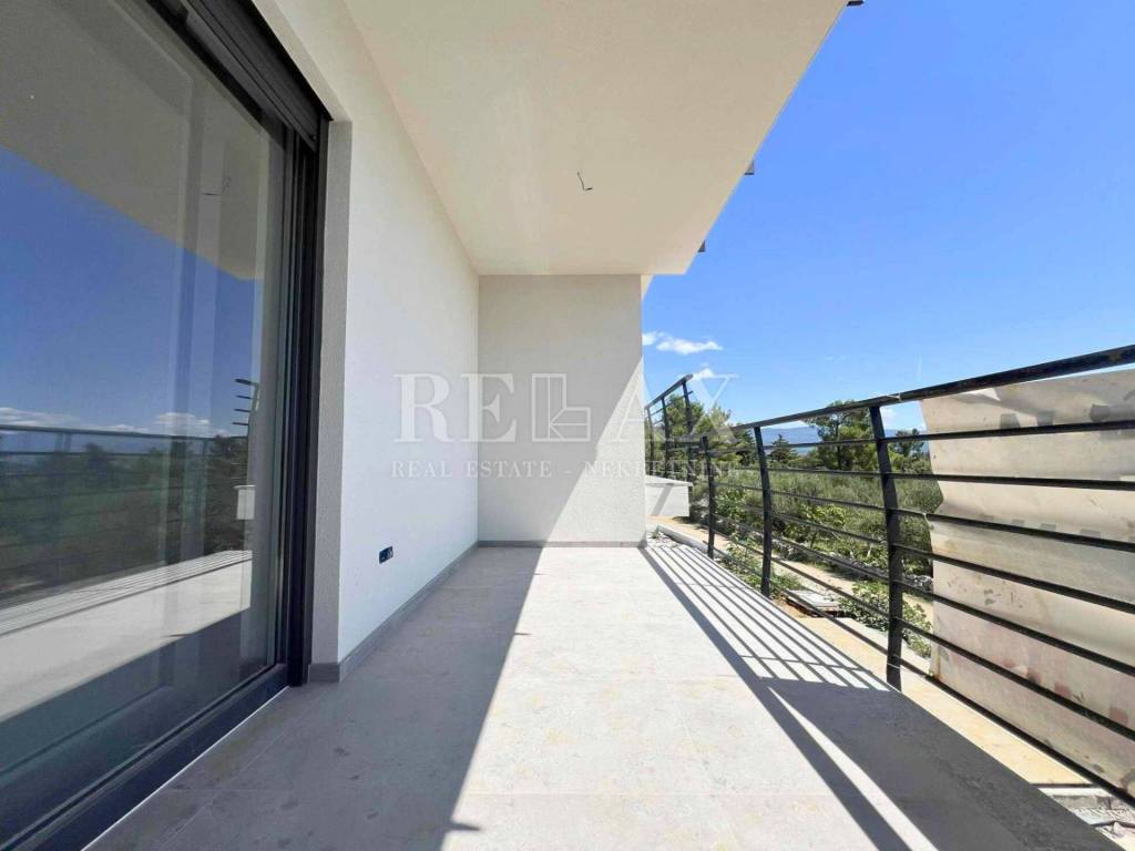 In attraktiver Lage im ruhigen Ort Ćižići auf der Insel Krk steht eine geräumige Zweizimmerwohnung zum Verkauf, die sich im ersten Stock eines Neubaus aus dem Jahr 2025 befindet. Die gesamte Wohnfläche beträgt 80,84 m² und umfasst eine Küche mit Essbereich, Wohnzimmer, zwei Schlafzimmer, Badezimmer, Flur und einen überdachten Balkon von 9,69 m² mit herrlichem Meerblick.