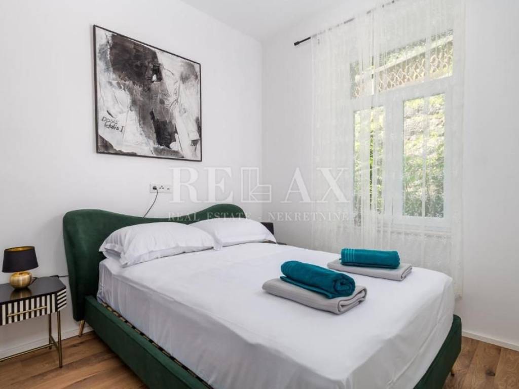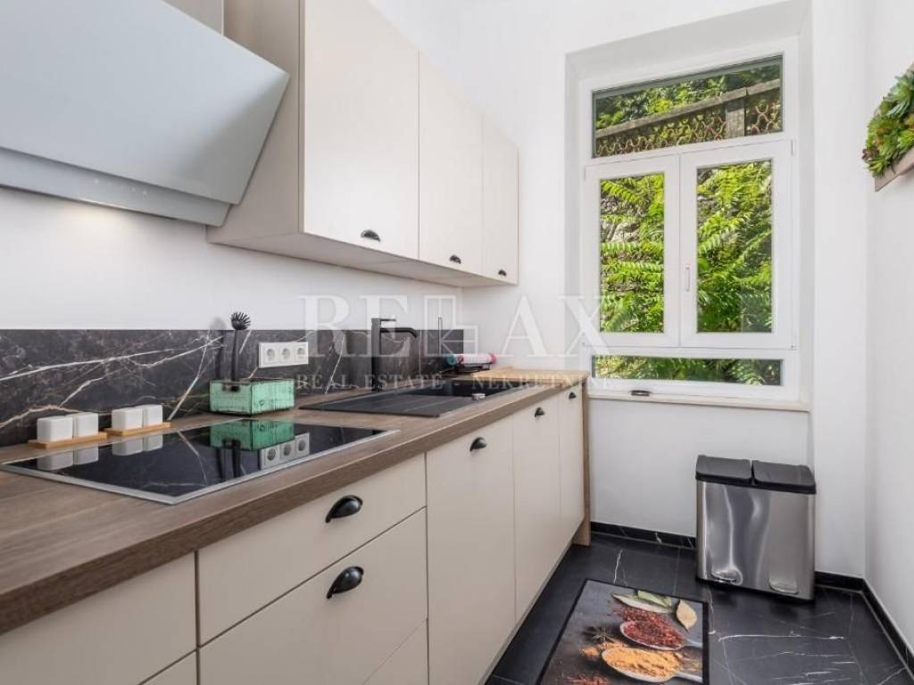 An einem der gefragtesten Standorte in Opatija, nur 200 Meter vom Meer und 500 Meter vom Stadtzentrum entfernt, befindet sich diese komplett renovierte Wohnung mit einer Fläche von 100,07 m².