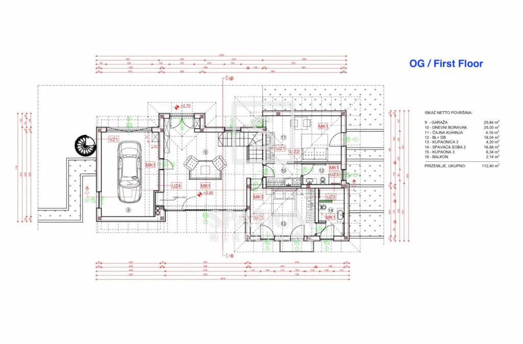 IKA, eine neu gebaute Villa mit Pool und Meerblick steht zum Verkauf. Die Villa befindet sich in einer ruhigen Umgebung, nicht weit vom nächsten Strand entfernt. Ihre Architektur vereint moderne, klare Linien mit großen Glasflächen und mediterranen Elementen wie einem geneigten Ziegeldach, schmiedeeisernen Geländern und neutralen Farbtönen. Der Haupteingang befindet sich im ersten Stock, wo sich auch die Garage befindet, die direkten Zugang zum Wohnzimmer bietet. Auf dieser Etage gibt es zwei Schlafzimmer, jeweils mit eigenem Bad, sowie eine kleine Küche.