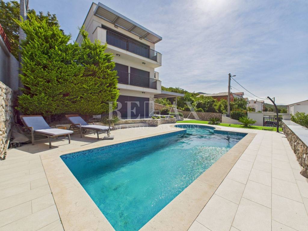 In ausgezeichneter Lage in Klenovica, nur 800 Meter zu Fuß vom Meer entfernt, befindet sich diese modern eingerichtete Villa mit Pool auf einer Wohnfläche von 370 m² und einem gepflegten Grundstück von 450 m² – ideal für Familienleben, Urlaub oder touristische Vermietung. Die Villa besteht aus zwei vollständig getrennten Wohneinheiten, was zusätzliche Flexibilität und Privatsphäre bietet.