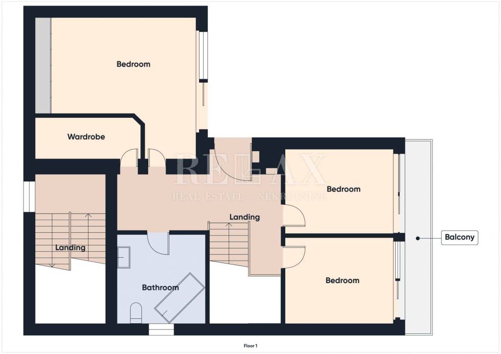Die größere, zweigeschossige Wohnung erstreckt sich über das Erdgeschoss und das erste Obergeschoss und umfasst ein großzügiges Wohnzimmer, das mit der Küche und dem Essbereich verbunden ist, drei Schlafzimmer, zwei Badezimmer sowie einen direkten Zugang zum gepflegten und umzäunten Garten. Im Garten befindet sich ein 40 m² großer Pool sowie ein seitlich gelegener, überdachter Bereich zum Entspannen und geselligen Beisammensein im Freien.