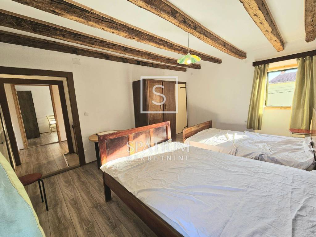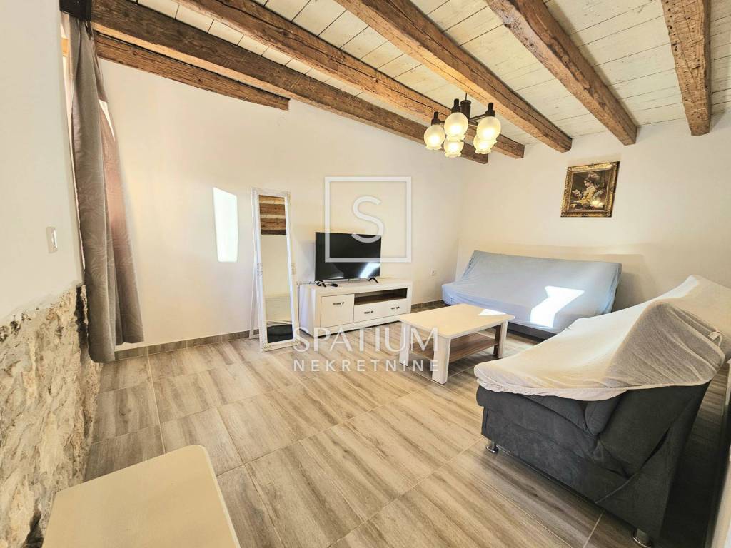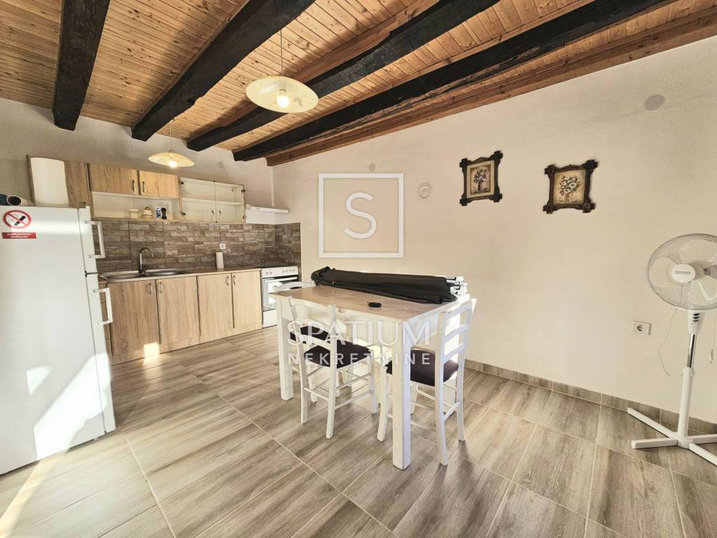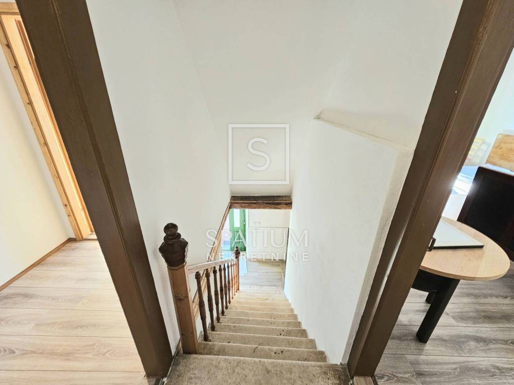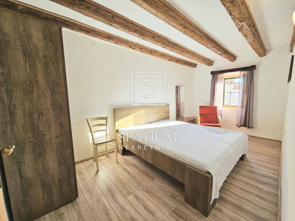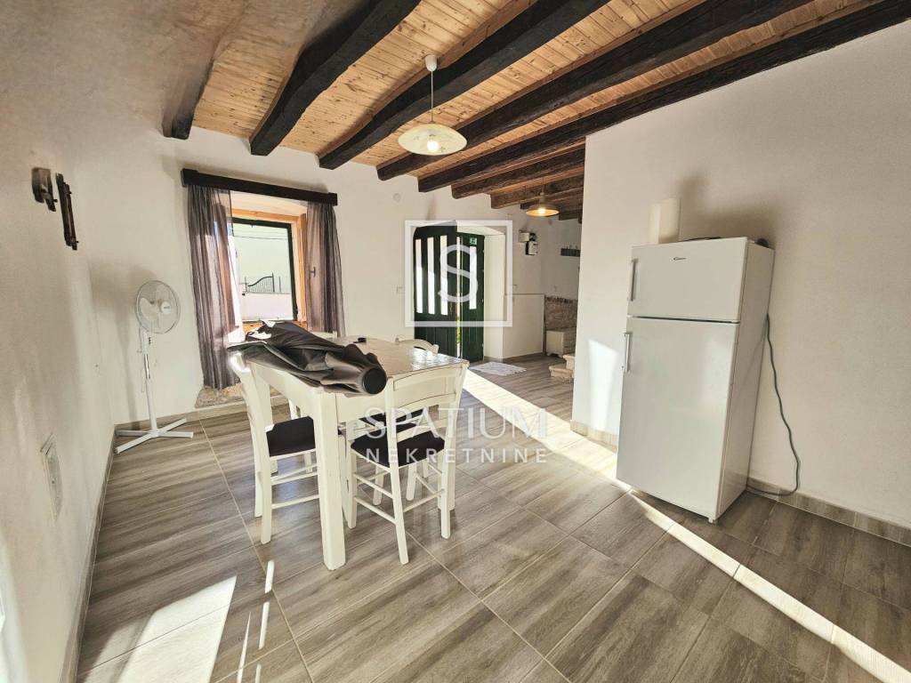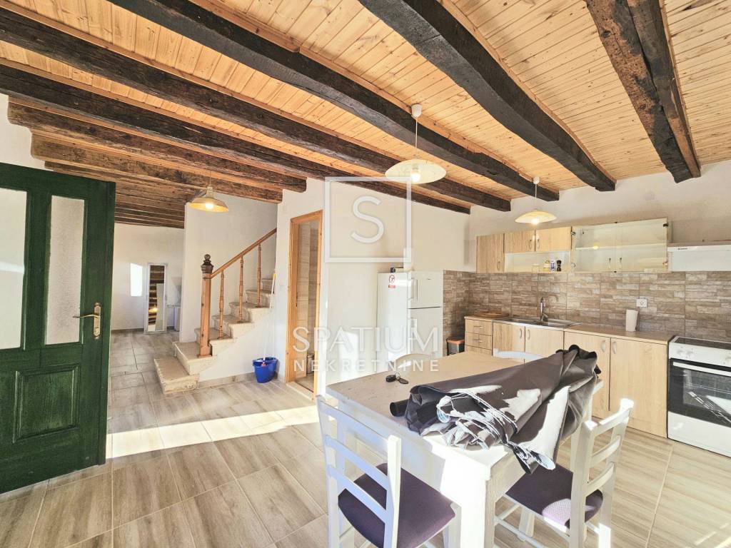 Im Erdgeschoss befinden sich ein geräumiges Wohnzimmer mit Essbereich, ein Schlafzimmer, eine Küche und ein Badezimmer. Über die Treppe gelangt man ins Obergeschoss mit drei weiteren Schlafzimmern und einem weiteren WC. Der 85,5 m² große Garten bietet eine „šterna“ (Wassertank), einen angelegten Garten mit Sitzgelegenheiten und einen Parkplatz für ein Fahrzeug.