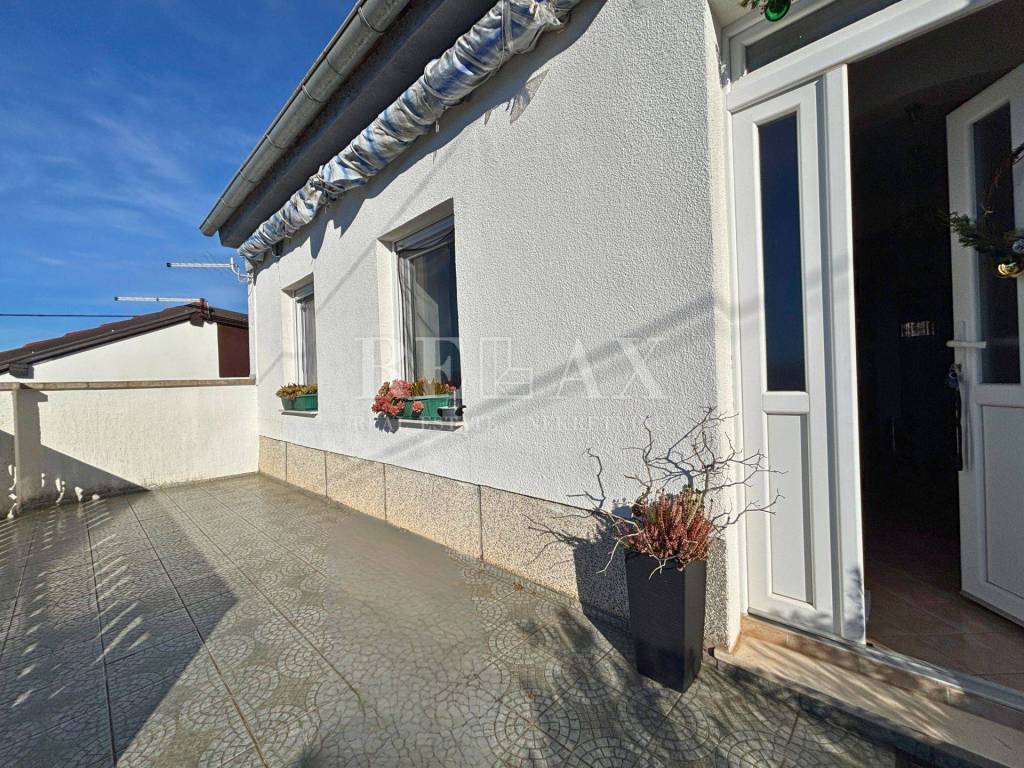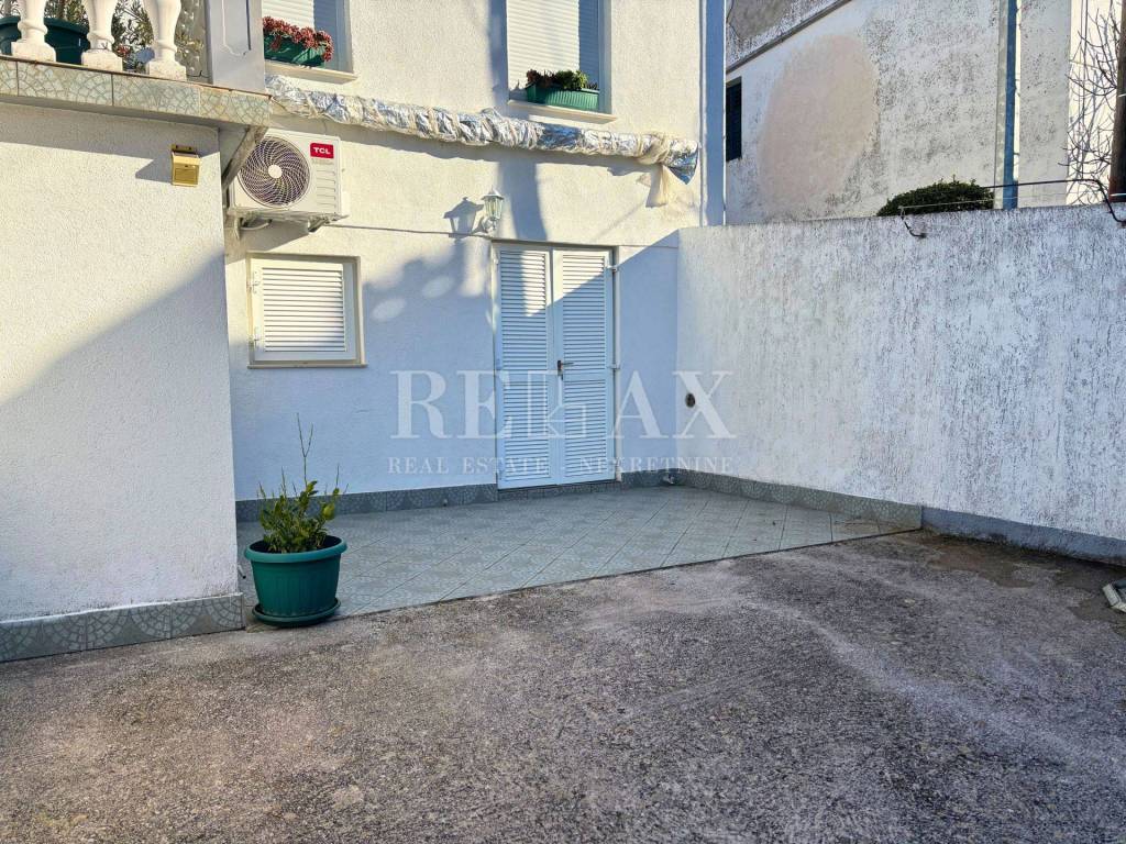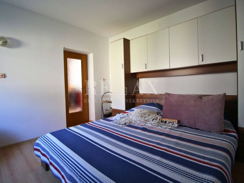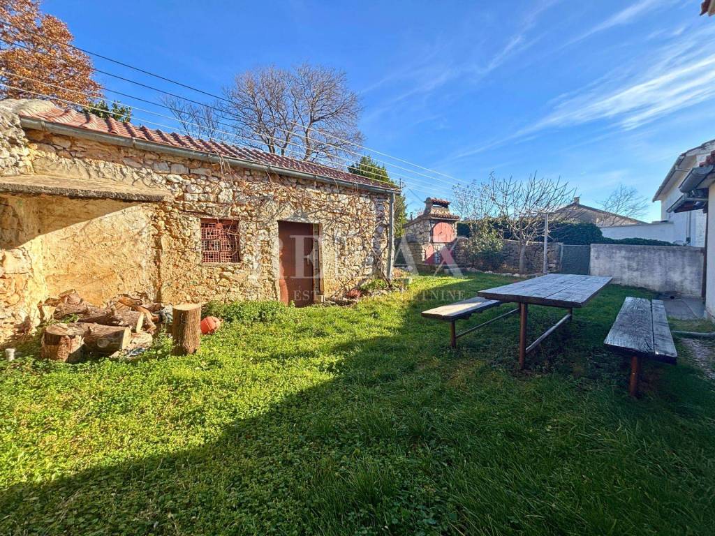 Im Erdgeschoss befinden sich zwei Studio-Apartments, während sich im Obergeschoss eine Wohnung mit Wohnzimmer, Küche mit Essbereich, zwei Schlafzimmern, Badezimmer sowie einem Balkon mit freiem Blick auf das Meer und die Brücke zur Insel Krk befindet. Das Objekt ist nach Südwesten ausgerichtet, was den ganzen Tag über für reichlich natürliches Licht sorgt.
