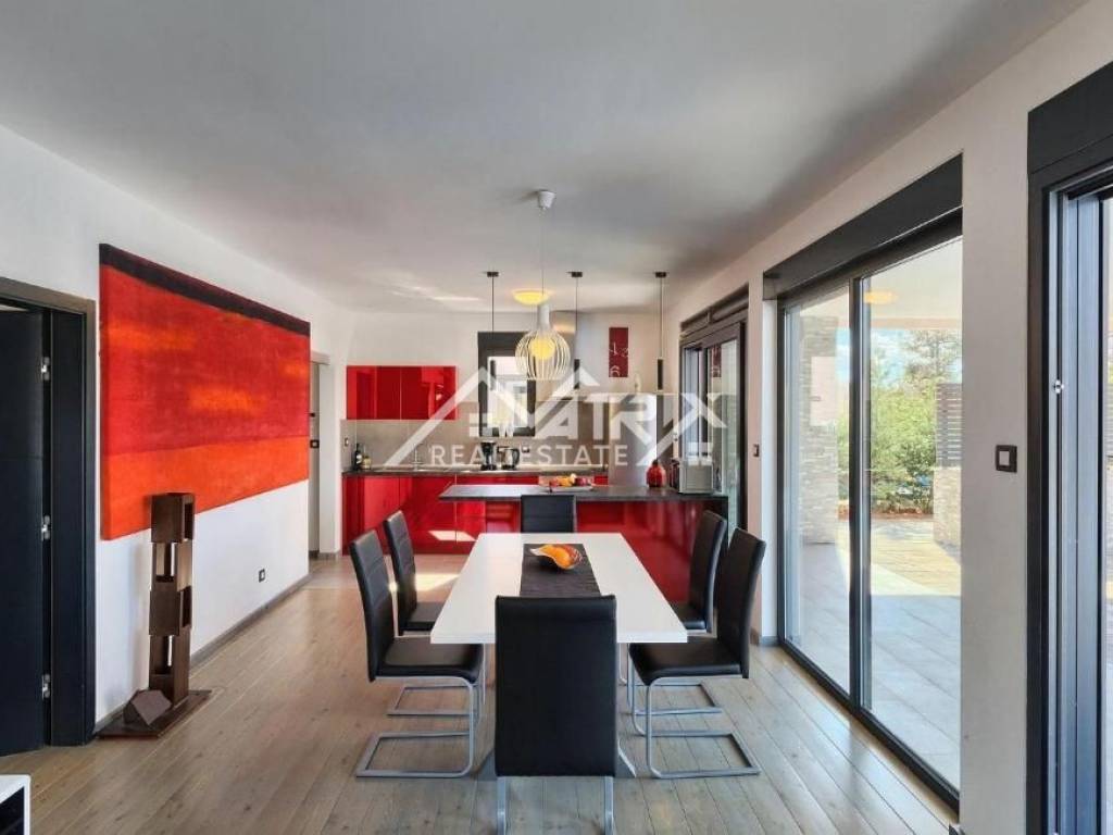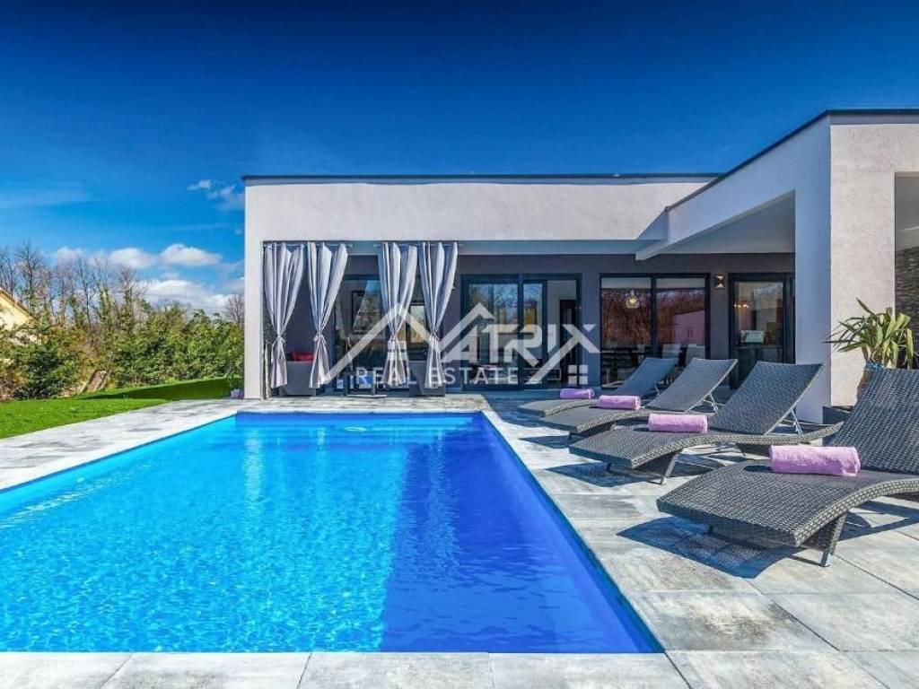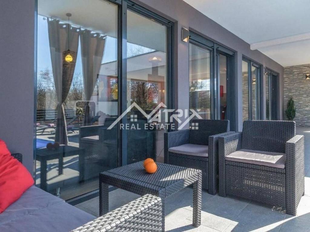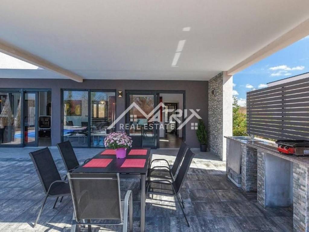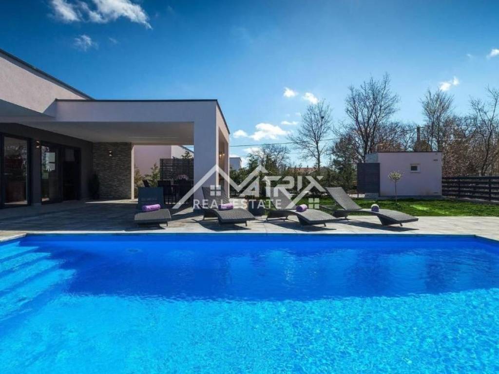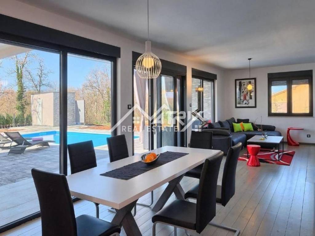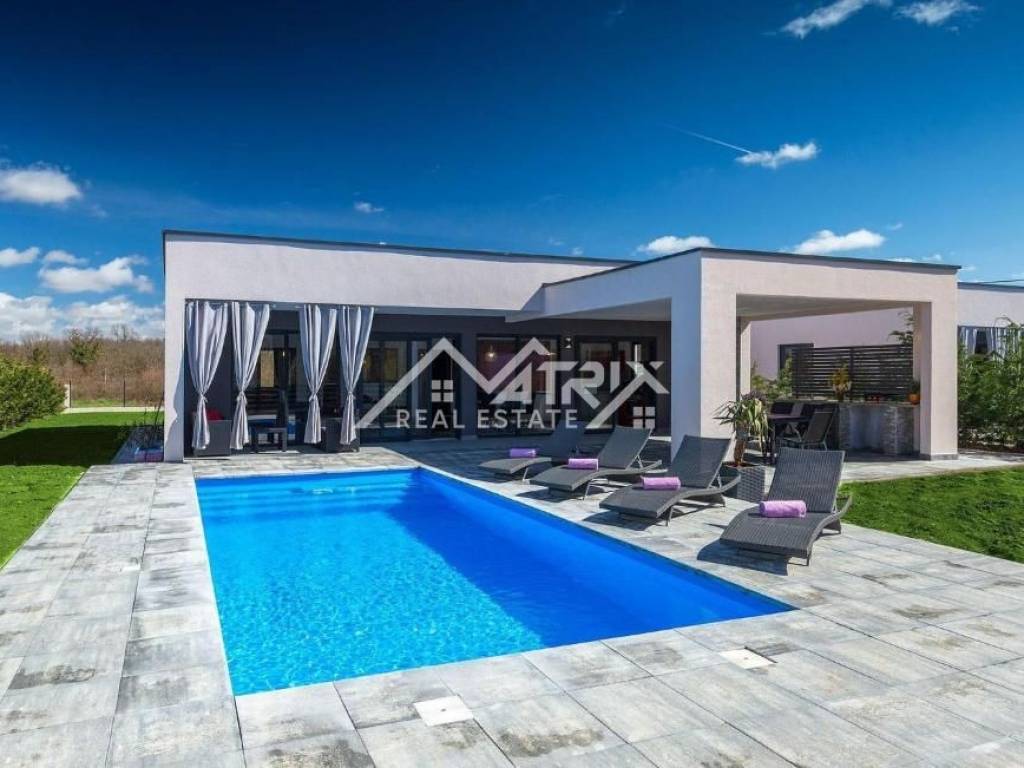This modernly decorated and fully furnished single-storey house with a swimming pool, with a total living area of 141 m², is for sale in a quiet Istrian village near Vodnjan. The villa is located in a truly excellent location - surrounded by greenery and privacy, yet close to Pula and Rovinj. The sea is only a 15-minute drive away.