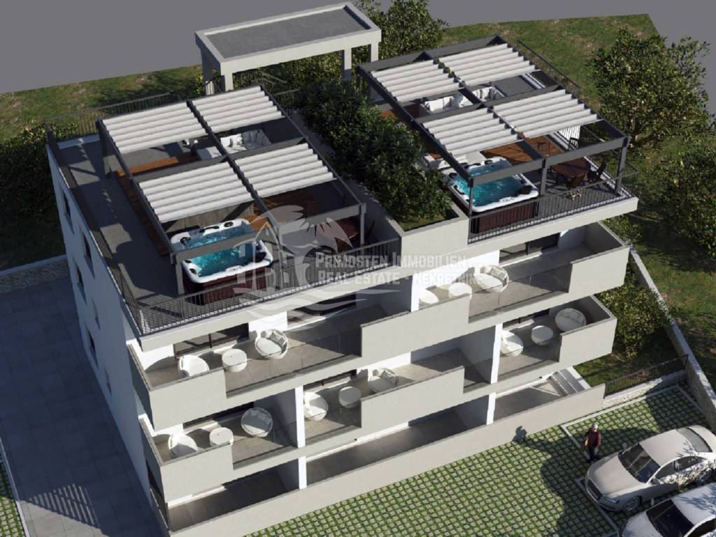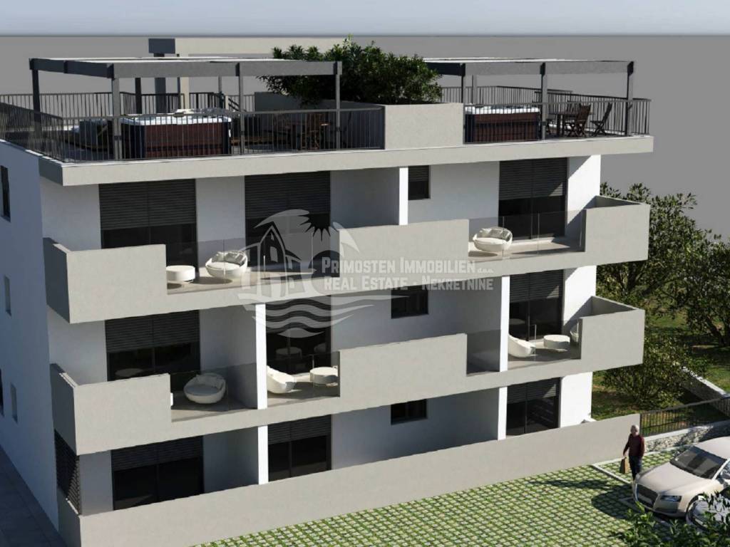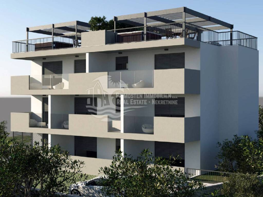 Top-Angebot! Wir vermitteln beim Verkauf einer Wohnung im zweiten Stock eines modernen Gebäudes bestehend aus 8 Wohneinheiten. Dieses Projekt befindet sich in einer ausgezeichneten Lage, in der Nähe aller touristischen Einrichtungen und 250 m vom Meer entfernt. Die Wohnung S8 hat eine Gesamtwohnfläche mit Balkon- und Dachterrassenverhältnis von 74,55 m2 und besteht aus Wohnzimmer, Küche und Esszimmer, zwei Schlafzimmern, Badezimmer und Flur. Vom Wohnzimmer aus gelangt man auf eine geräumige Terrasse von 15,44 m2 mit Blick auf das Meer. Die Wohnung verfügt über eine Dachterrasse von 68 m2 und einen Außenparkplatz. Das Gebäude wird nach den neuesten Baustandards gebaut und die Wohnungen werden klimatisiert. In der Wohnung wird eine Fußbodenheizung installiert.