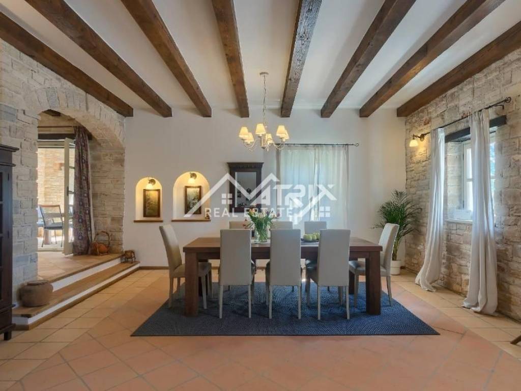 Eine wunderschöne freistehende Steinvilla mit Swimmingpool steht zum Verkauf. Die Wohnfläche beträgt insgesamt 280 m² und die Villa befindet sich in ruhiger, grüner Umgebung nahe Tinjan.
