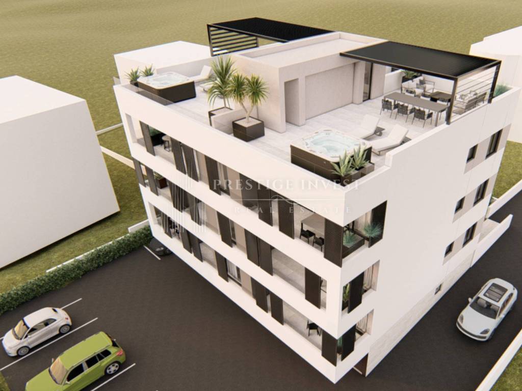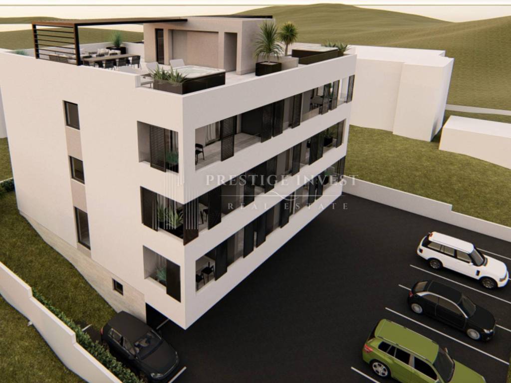 Die Wohnung befindet sich in einem kleineren Wohngebäude mit modernem Design und hochwertiger Bauweise.