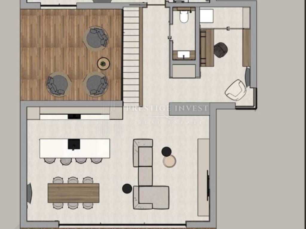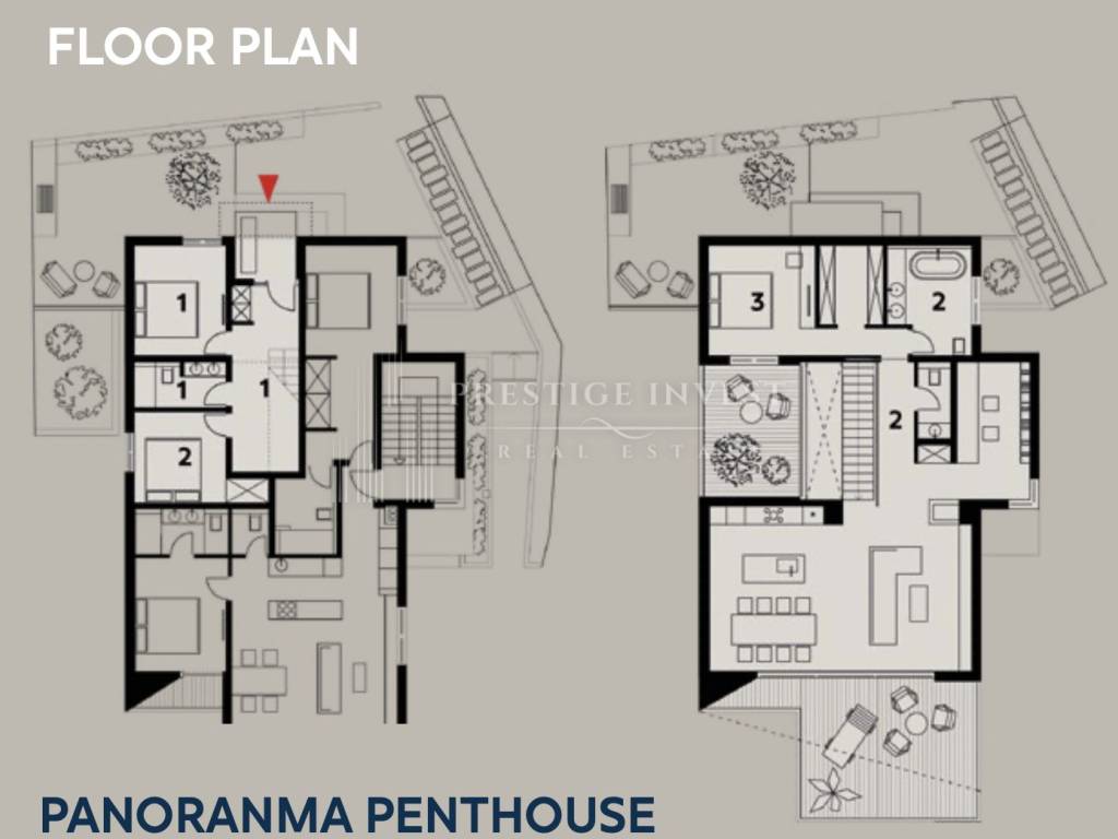 Objektbeschreibung: Das Penthouse erstreckt sich über zwei Etagen – das zweite und dritte Obergeschoss – und verfügt über einen separaten Eingang an der Nordseite. Dadurch ist es eine exklusive und private Wohnung innerhalb des Gebäudes.