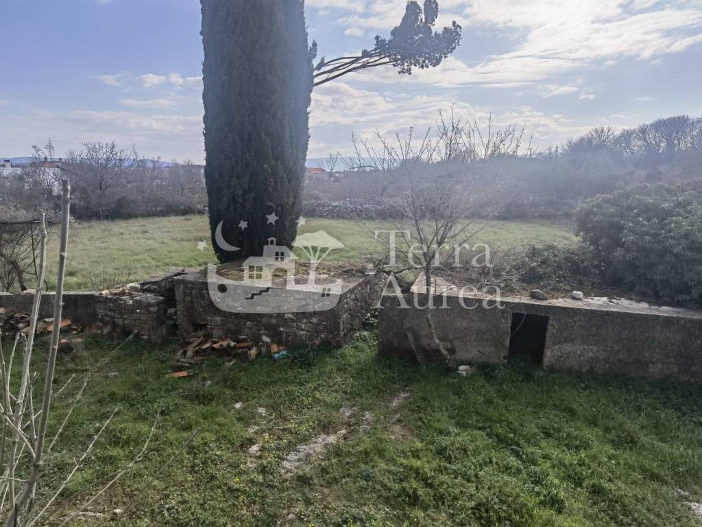 Zum Verkauf steht eine charmante Antiquität und das schöne Land, das sie umgibt. Das alte Haus ist komplett renovierungsbedürftig, es wurde aus autochthonem Stein aus Krk gebaut, erstreckt sich über zwei Stockwerke und daneben stehen mehrere Nebengebäude.