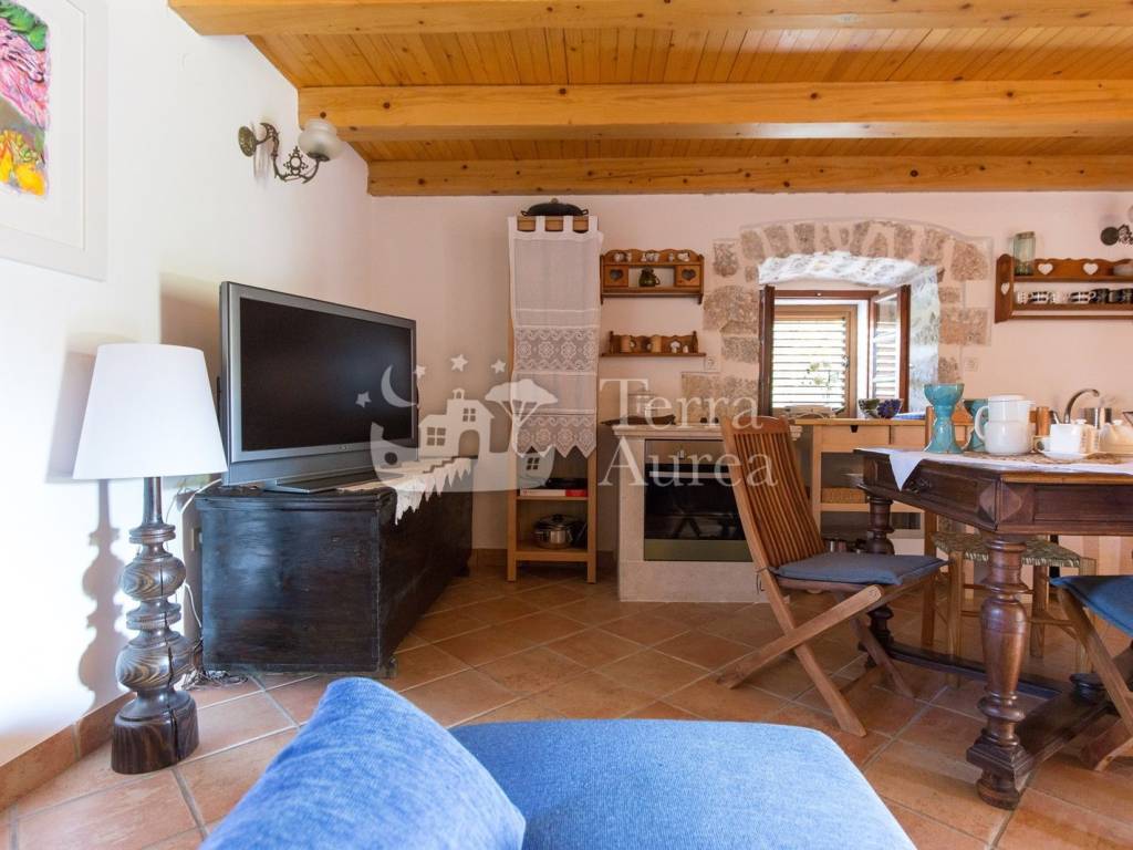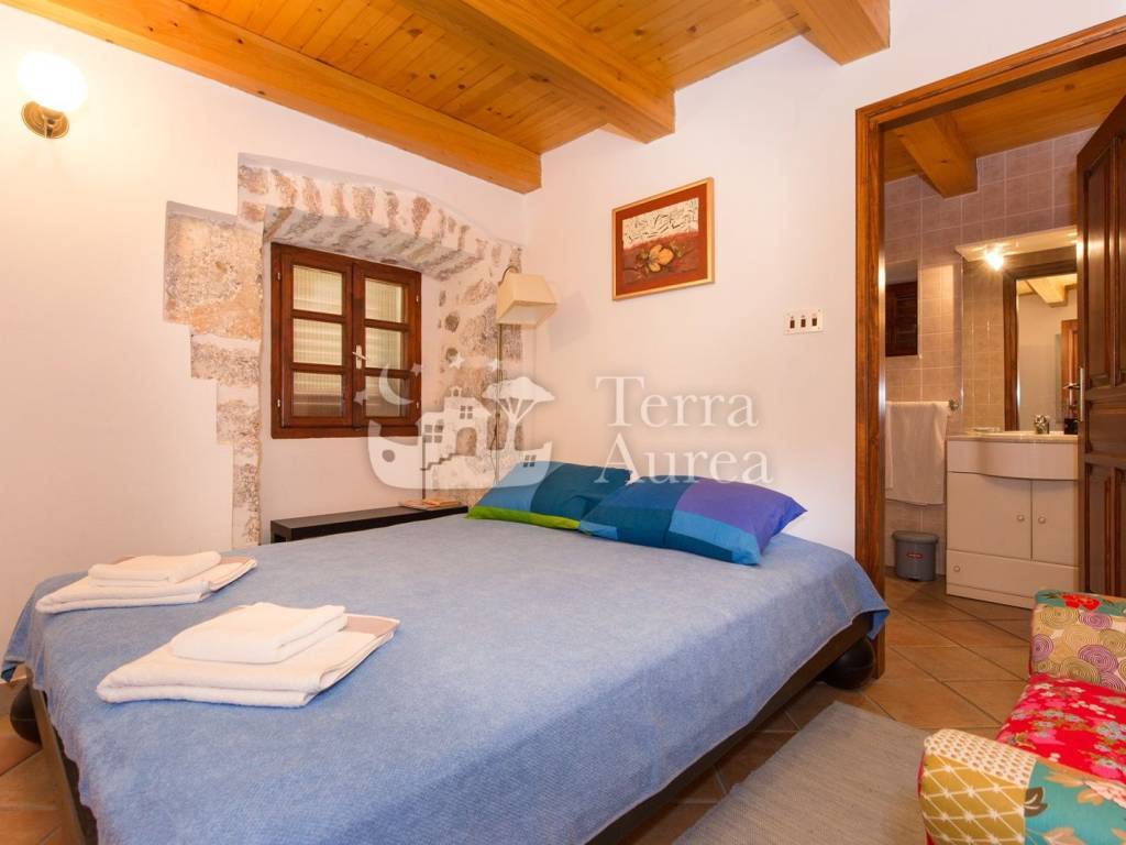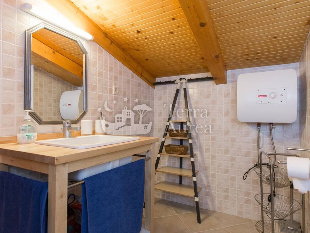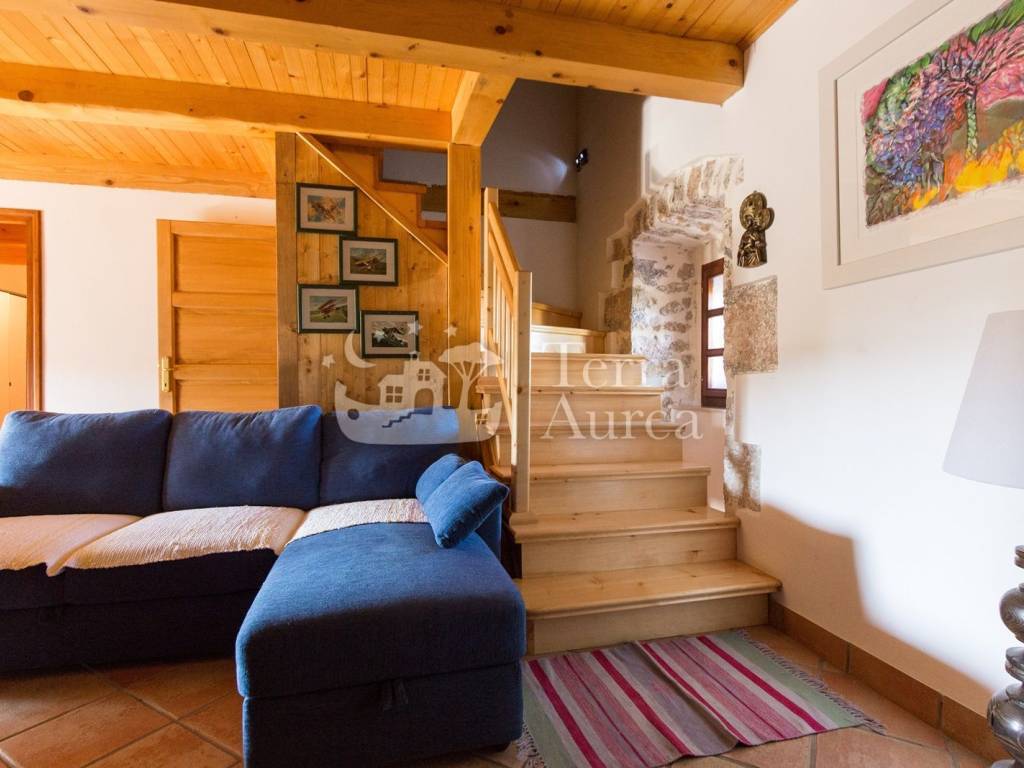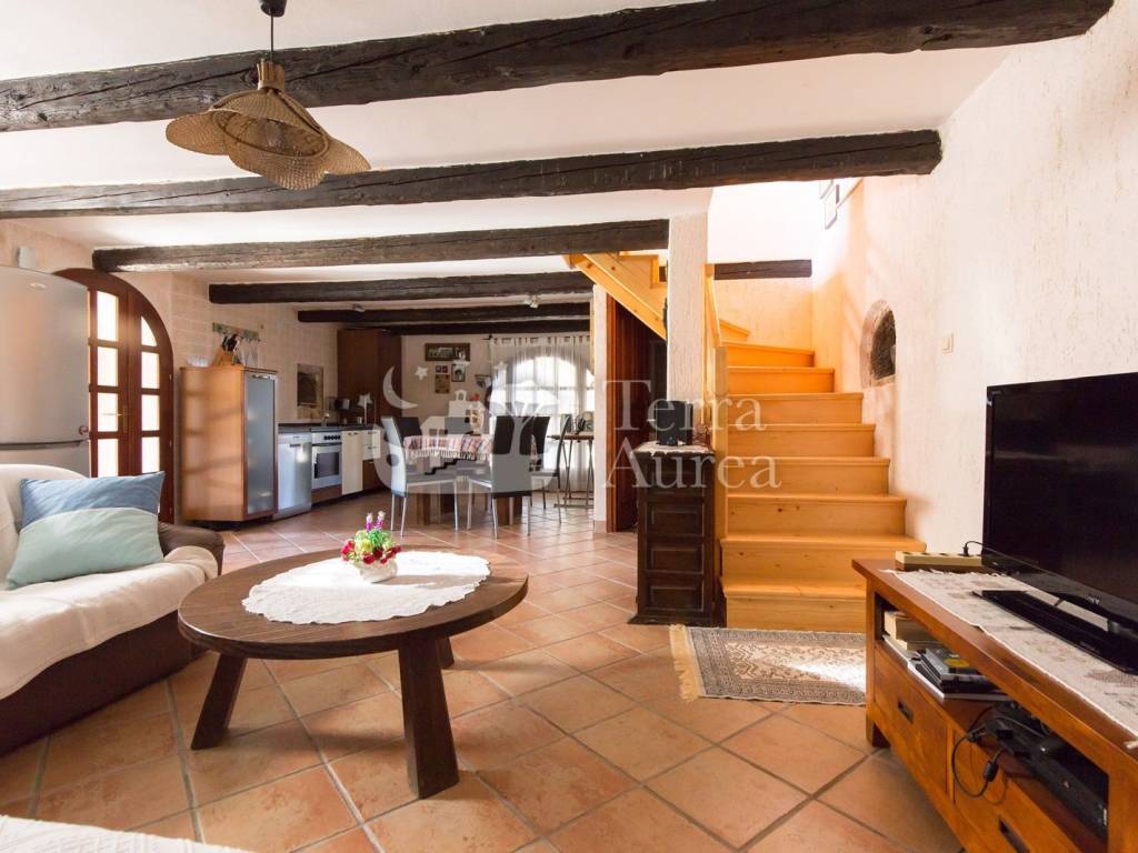 Steindetails, Keramikbodenbeläge und Holzelemente tragen zum rustikalen Charme bei, während Klimaanlage und Vorbereitung für Zentralheizung das ganze Jahr über für maximalen Komfort sorgen.