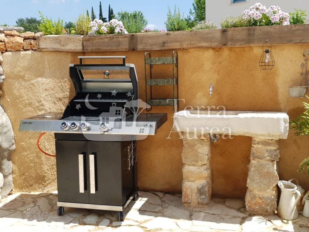 Das Anwesen verfügt außerdem über einen praktischen Abstellraum für eine Sauna. Steindetails, Keramikböden und Holzelemente tragen zum rustikalen Charme des Hauses bei.