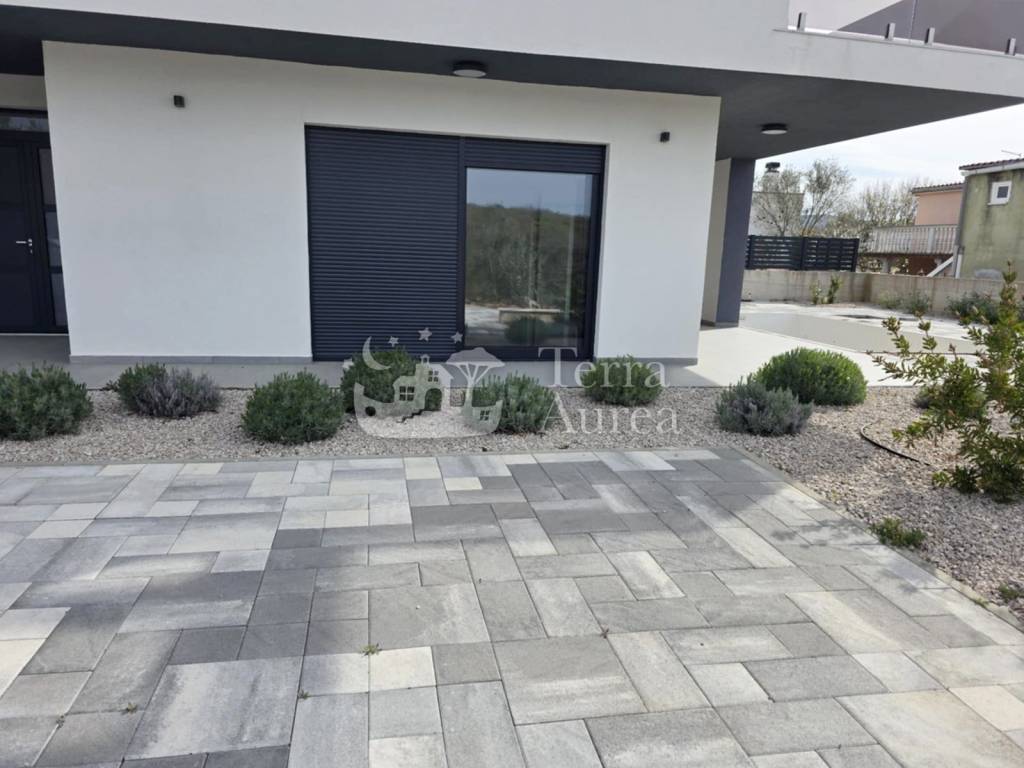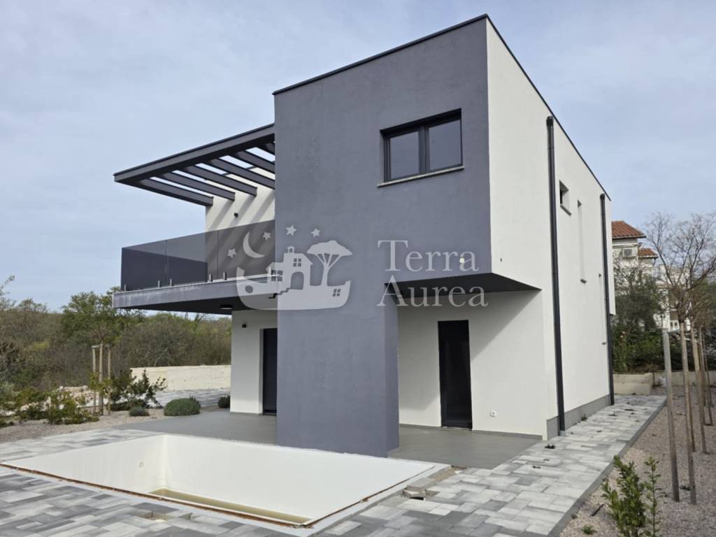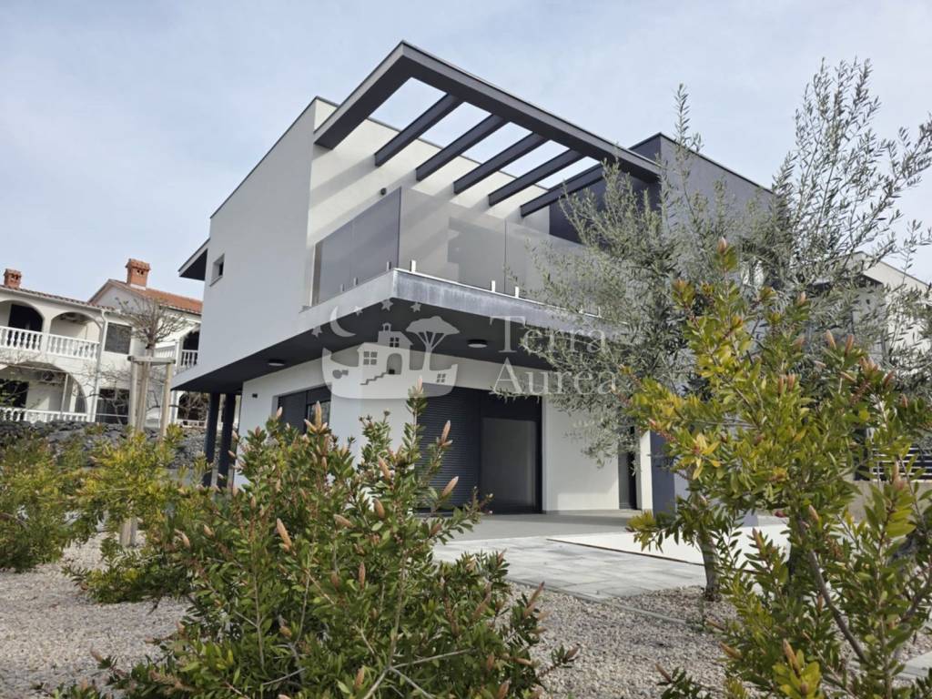 Zum Verkauf steht eine Luxusvilla in einer ruhigen Gegend der Stadt Krk, die durch ihre Eleganz und ihr anspruchsvolles Design besticht.