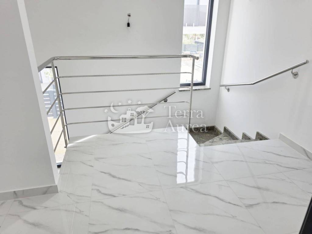 Im Obergeschoss befinden sich drei geräumige Schlafzimmer, jeweils mit eigenem Bad. Zwei Zimmer haben Zugang zu einer Terrasse, während das Hauptschlafzimmer Zugang zu einer Terrasse mit herrlichem Meerblick bietet.