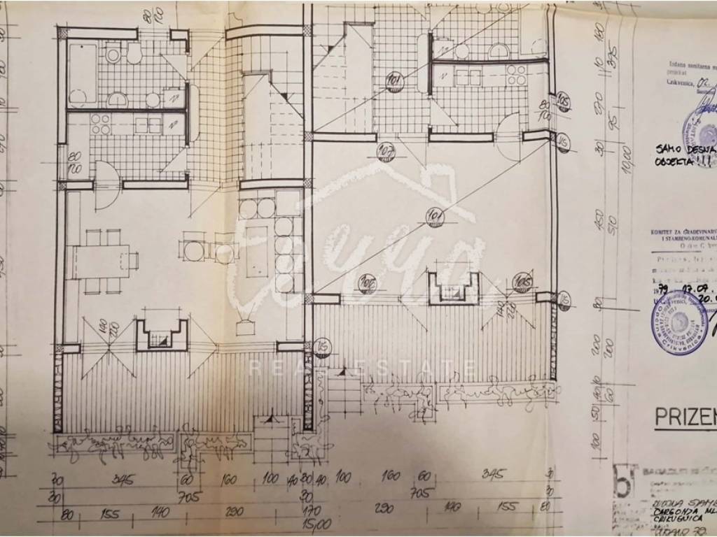 Zum Verkauf steht eine Doppelhaushälfte mit schönem Garten und mehreren Parkplätzen im bestdekorierten Teil von Crikvenica in ausgezeichneter und ruhiger Lage. Es besteht aus zwei Etagen und zusätzlichem Raum auf dem nördlichen Teil des Grundstücks. Das Erdgeschoss besteht aus einem Flur, Bad, Küche und drei Zimmern, von denen eines in ein Wohnzimmer und zusätzlichen Stauraum umgewandelt werden kann. Vor dem Haus befindet sich eine Terrasse mit natürlichem Schatten und ein schön angelegter Garten. Eine Außentreppe auf der Nordseite führt in den ersten Stock, der die gleiche Aufteilung wie das Erdgeschoss hat und zusätzlich einen Zugang zum Dachboden und einen Ausgang zum Südbalkon mit Blick auf das Meer bietet. Eine Immobilie mit viel Potenzial, sowohl für die touristische Vermietung als auch für zukünftige Investitionen, in einer selten guten Lage und definitiv Ihre Aufmerksamkeit wert.