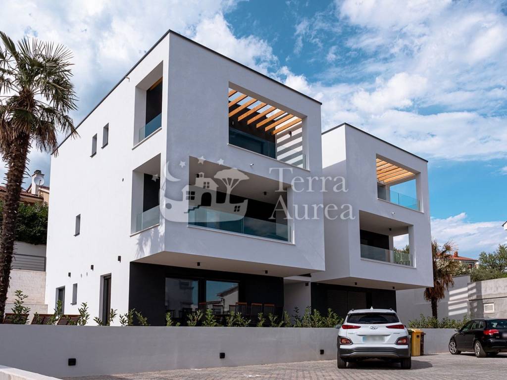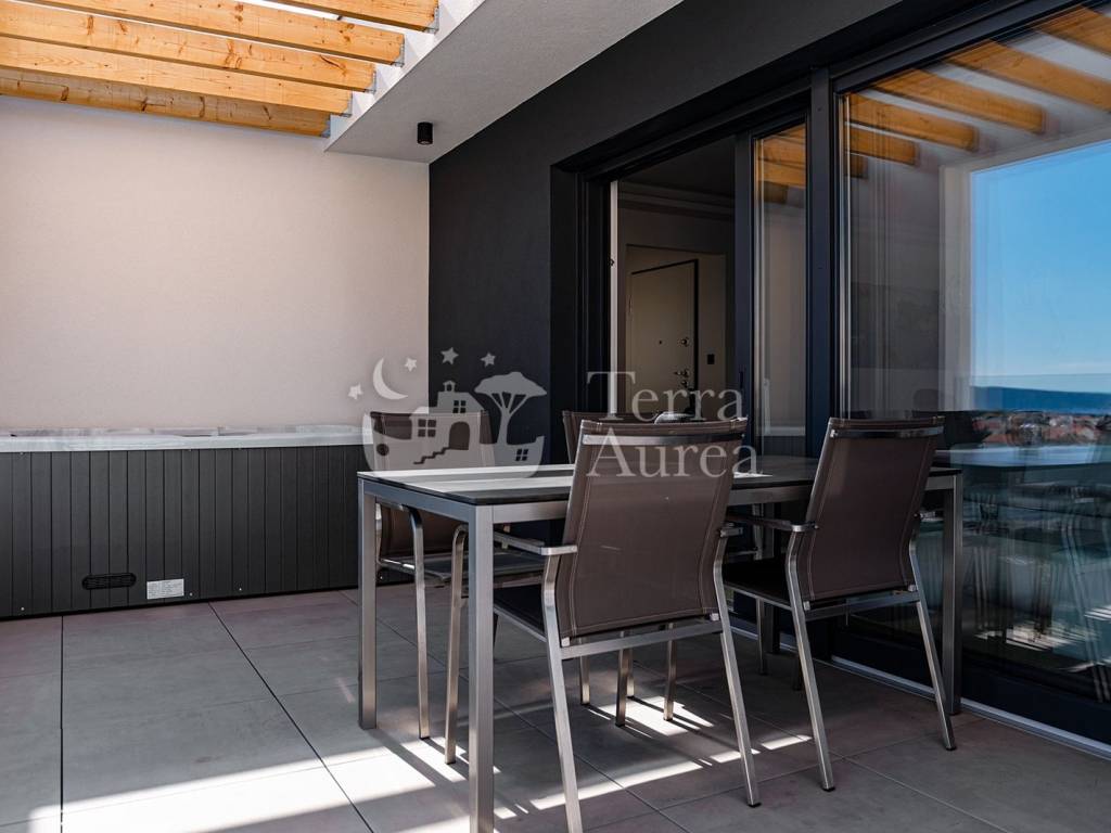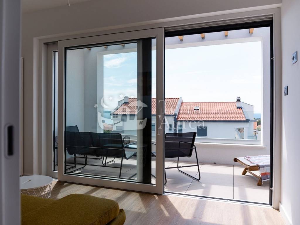 In attraktiver Lage in der Stadt Krk, nur wenige Gehminuten vom Meer und allen notwendigen Einrichtungen entfernt, befindet sich dieses exklusive Penthouse, das modernes Design, hochwertige Bauweise und maximalen Komfort vereint.
