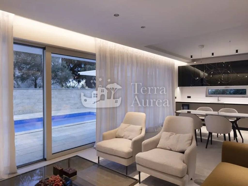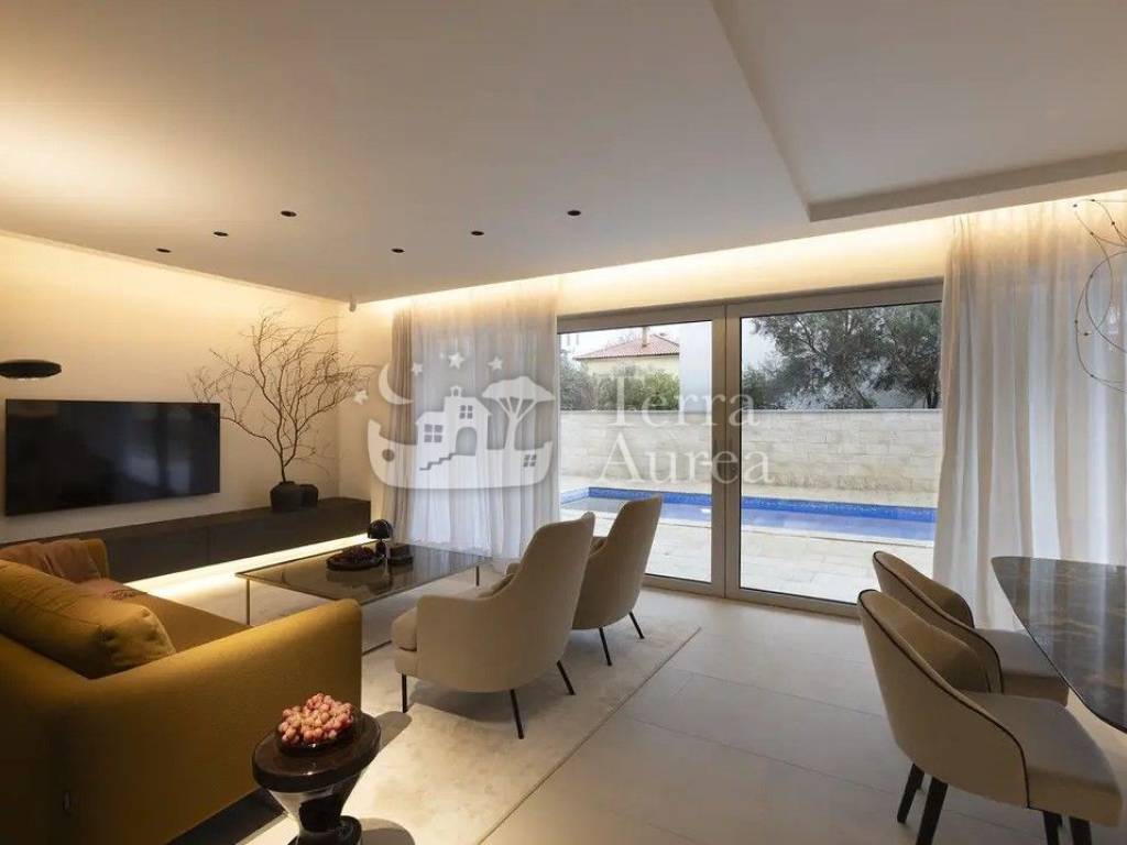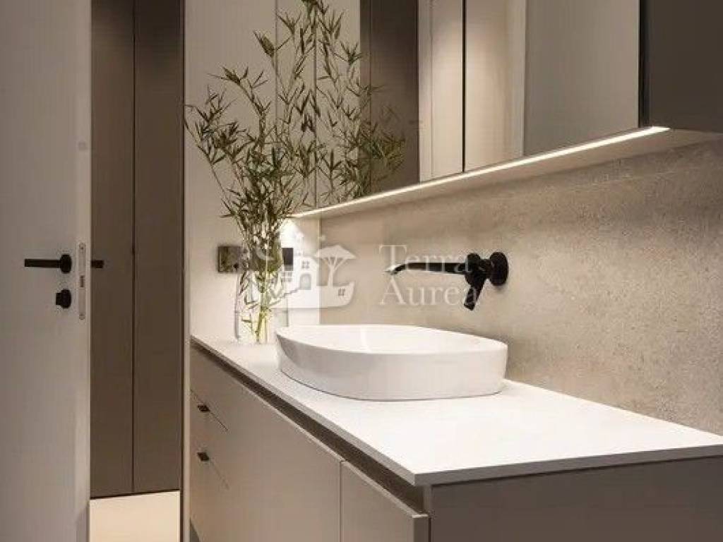 Bei der Bauausführung wurden ausschließlich hochwertige Materialien und Ausstattungsmerkmale verwendet, darunter Aluminiumfenster mit elektrischen Rollläden, eine Sicherheitstür, hochwertige Fliesen, Parkettböden in den Schlafzimmern und Markenarmaturen. Die Wohnung ist mit Fußbodenheizung (Wärmepumpe) und Daikin-Klimaanlagen in allen Räumen ausgestattet, die ganzjährig ein angenehmes Raumklima gewährleisten.