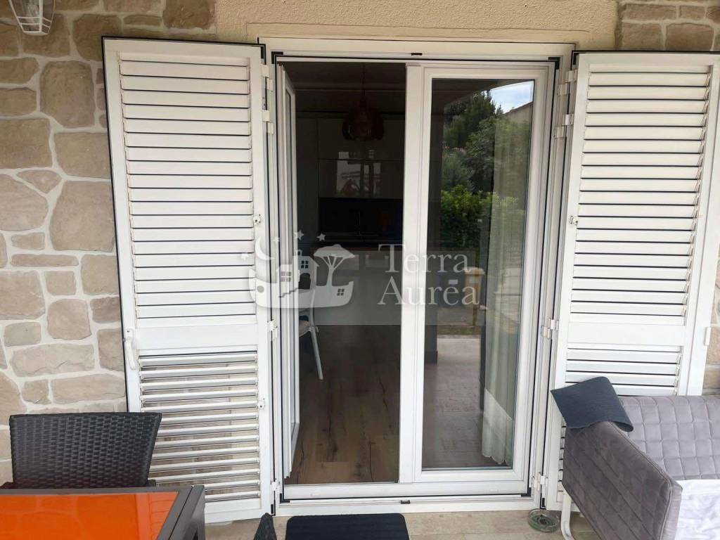 Im Erdgeschoss befindet sich ein Apartment mit Wohnzimmer, Küche, zwei Schlafzimmern, Badezimmer und einer geräumigen Terrasse, die ideal zum Genießen und Entspannen ist.