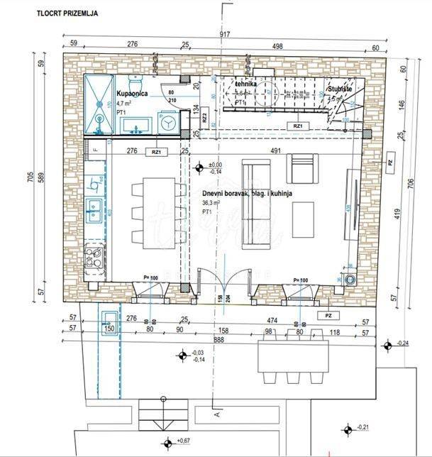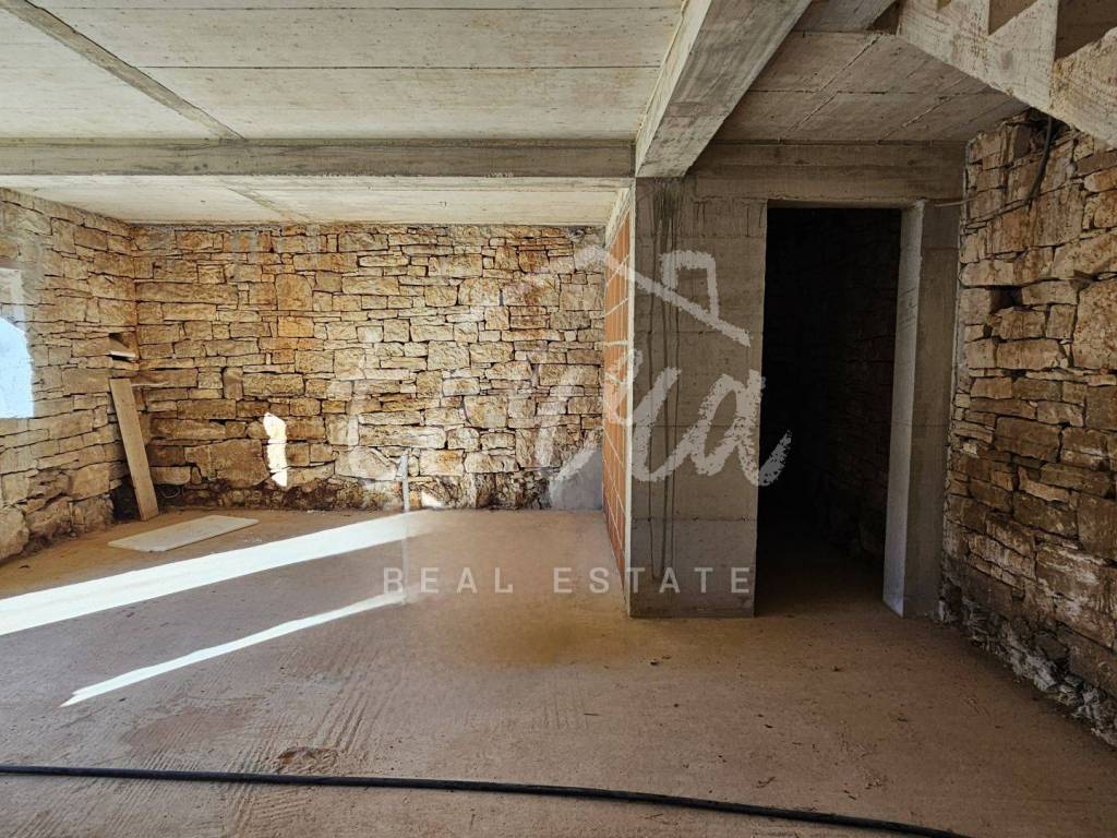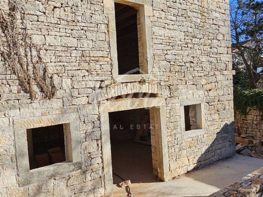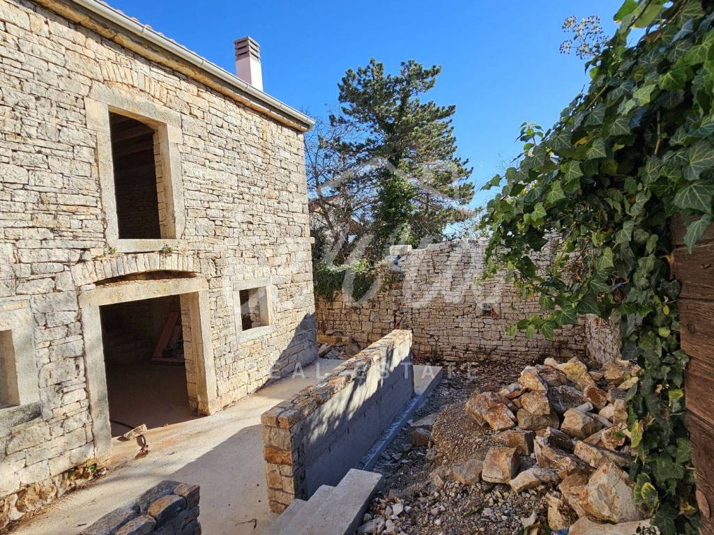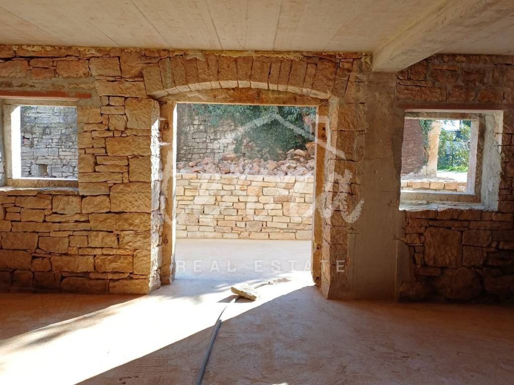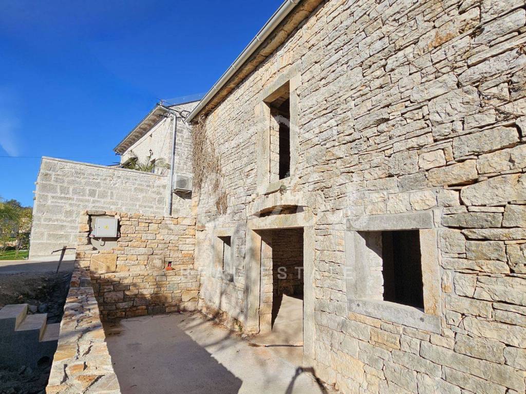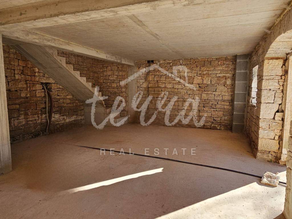 Info 00385 98 592122 Roberta Freistehendes Steinhaus in einem ruhigen Dorf bei Tinjan. Die Baugenehmigung liegt vor und der Baubeginn wurde gemeldet. Eine Stahlbeton-Bodenplatte, ein Stahlbeton-Zwischengeschoss mit Betontreppe und eine neue Holzkonstruktion mit allen Schichten und einer abschließenden Eindeckung aus mediterranen Ziegeln wurden errichtet. Im Erdgeschoss wurde eine Trennwand für die Toilette eingebaut. Laut Plan wurden vier neue Fensteröffnungen geschaffen und die alten Ziegel an der Außenfassade wiederverwendet. Das Grundstück verfügt über einen Wasseranschluss und einen Baustellenstromanschluss. Eigentumsanteil 1/1 Ideale Investition im Tourismussektor.