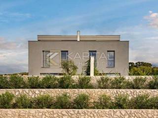 Predstavljamo jedinstveni projekt luksuzne niskoenergetske dvojne kuće u Kostreni. Svaka kuća ima vlastitu proizvodnju energije putem solarne elektrane. Ugrađeno je podno grijanje, fan coil hlađenje i dizalica topline. Građene su vrhunskim materijalima, poput čvrstog Prefa krova i vanjske stolarije brenda Cortizo. Sastoje se od suterena, prizemlja, prvog kata i krovne terase. U suterenu se nalazi praonica rublja, strojarnica i toalet. U prizemlju je open space dnevni boravak, kuhinja i blagovaonica s izlazom na donju terasu. Na prvom katu su 3 spavaće sobe i kupaonica. Na zadnjem katu je master bedroom s vlastitom kupaonicom. Poseban ukras ovoj kući je krovna terasa za uživanje na suncu s otvorenim pogledom na more tijekom čitave godine. Privatna garaža osigurava sigurno parkiranje + 2 dodatna parkirna mjesta po stanu. Kuća ima odličnu lokaciju u blizini škole, vrtića, sportske dvorane, igrališta, knjižnice.. Morska obala udaljena je samo nekoliko minuta hoda ili vožnje, uz brz pristup moru, morskoj obali i šetnici koja se proteže više od 4 km. Za sve dodatne informacije nazovite 091/540-8520 ili 099/2196 353.