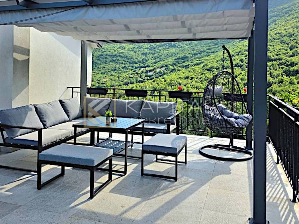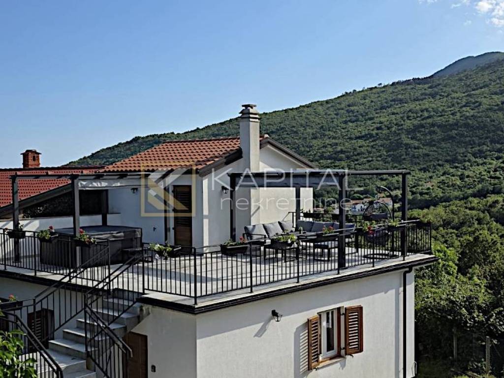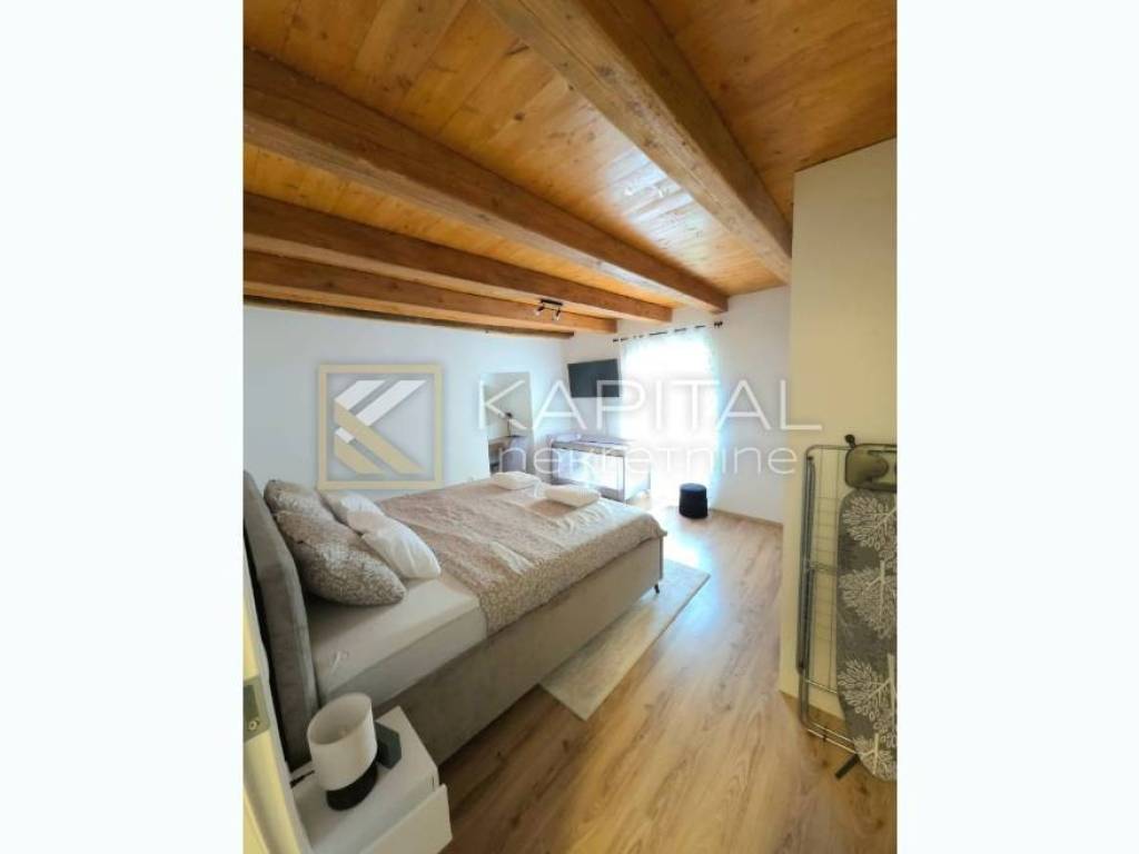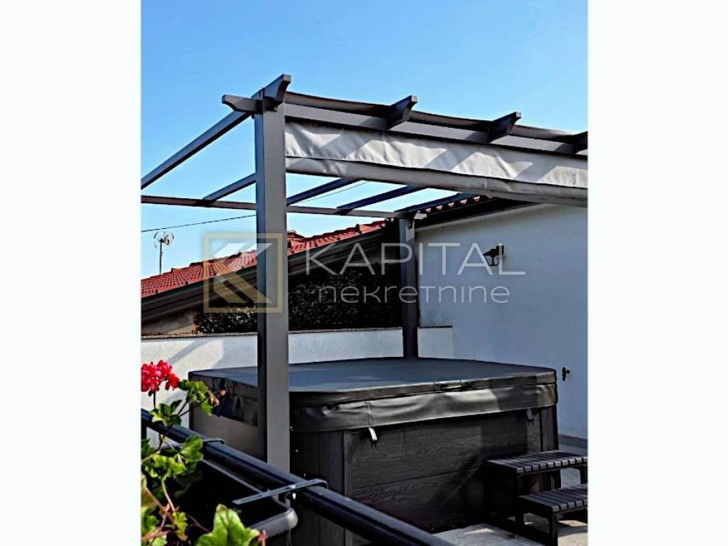 Zum Verkauf steht ein Haus mit Wellnessbereich in Brseć, ideal für eine Investition oder ein komfortables Familienleben. Bei der Immobilie handelt es sich um eine Doppelhaushälfte mit einer Gesamtwohnfläche von 130 m², gelegen auf einem 350 m² großen Grundstück. Es besteht aus einem Keller, einem Erdgeschoss und einem Keller. Im Keller befinden sich zwei separate Räume – einer dient derzeit als Lagerraum und der andere als Sozialraum. Das Erdgeschoss ist als 2S DB-Wohnung konzipiert, mit einer Gesamtfläche von 82 m². Es besteht aus einem offenen Wohnzimmer, einer Küche und einem Esszimmer mit Zugang zum Balkon, zwei Schlafzimmern und einem Badezimmer. Im ersten Stock gibt es einen Raum mit Sauna und eine großzügige Terrasse mit zwei Pergolen, unter einer davon befindet sich ein Whirlpool und unter der anderen Gartenmöbel zum Entspannen und Genießen. Der Hof ist komplett begrünt und wird als Parkplatz, Kinderspielplatz und Grillplatz genutzt. Das Anwesen wurde komplett renoviert, einschließlich Boden- und Wandbelägen, Installationen, Sanitäranlagen, Schreinerei, Küche und allen Möbeln. Der Kontakt zur Besichtigung ist 091/540 8520 oder 099/2196 353.