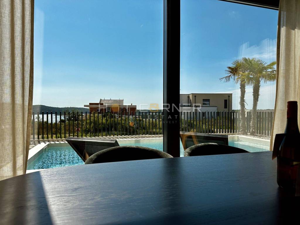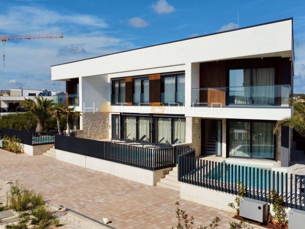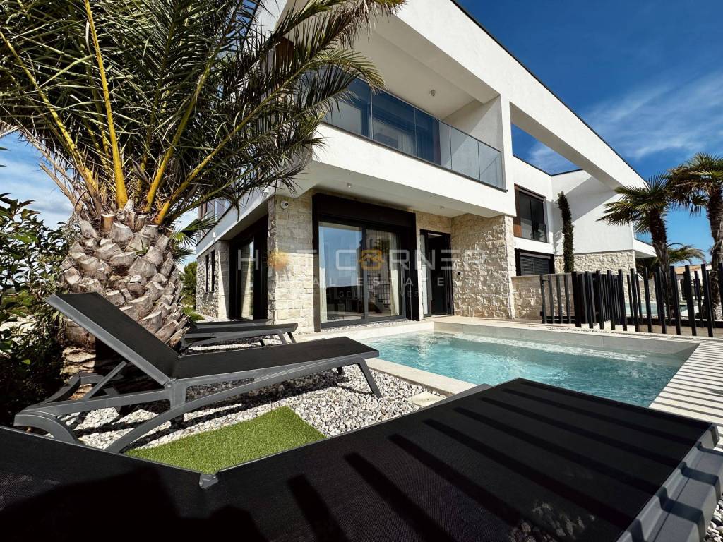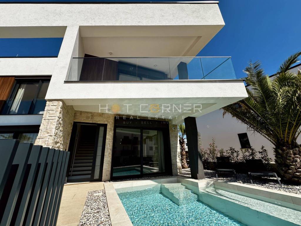 Jedes Haus verfügt über einen privaten beheizten Pool, einen gepflegten Garten, zwei Parkplätze innerhalb eines umzäunten Grundstücks sowie großzügige Terrassen mit überdachten Bereichen und Chill-out-Zonen, die ein hohes Maß an Privatsphäre bieten. Die Häuser sind auf erhöhten Fundamenten errichtet, um den Meerblick optimal zu nutzen, während große Glasflächen für viel Tageslicht sorgen.