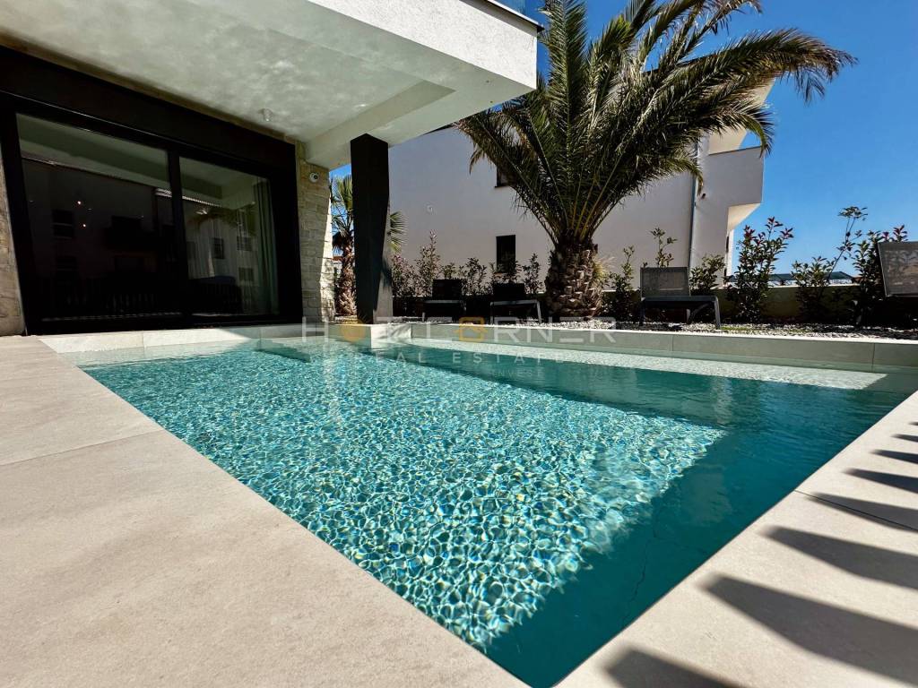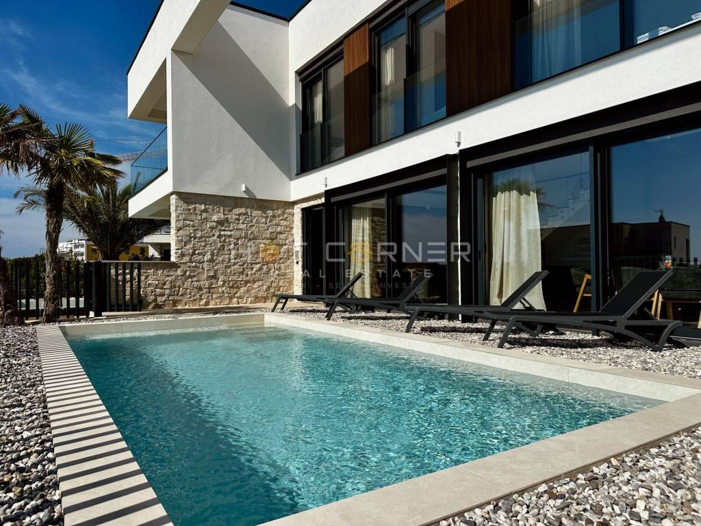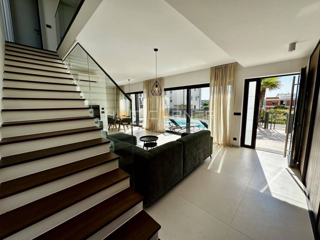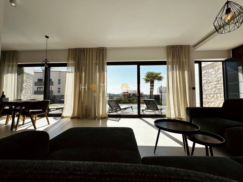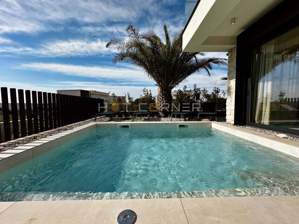 Jedes Haus verfügt über einen privaten beheizten Pool, einen gepflegten Garten, zwei Parkplätze innerhalb eines umzäunten Grundstücks sowie großzügige Terrassen mit überdachten Bereichen und Chill-out-Zonen, die ein hohes Maß an Privatsphäre bieten. Die Häuser sind auf erhöhten Fundamenten errichtet, um den Meerblick optimal zu nutzen, während große Glasflächen für viel Tageslicht sorgen.