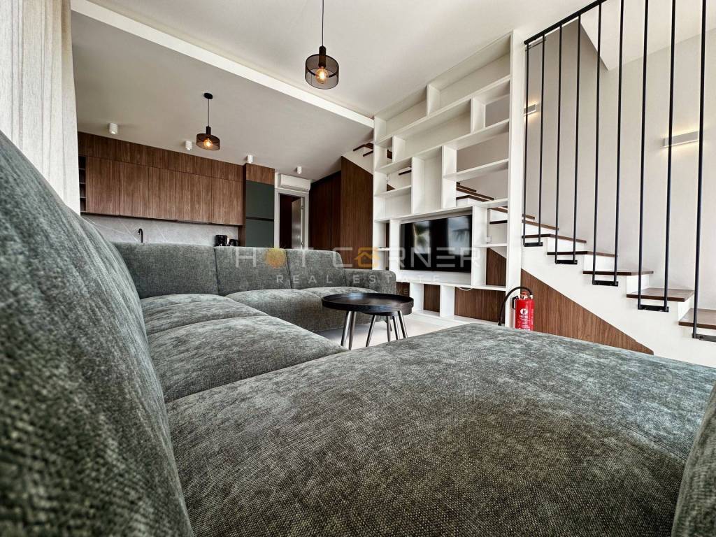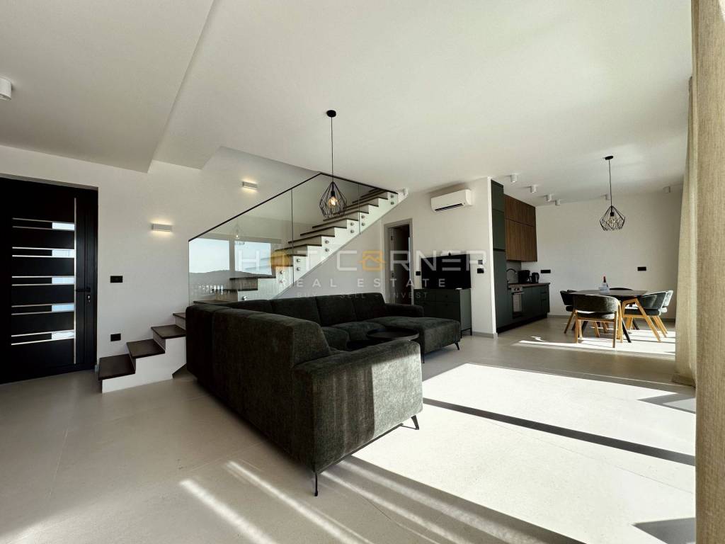 Die Innenräume sind modern und funktional gestaltet, mit einem offenen Wohnkonzept, das Küche, Essbereich und Wohnzimmer verbindet und sich ideal für ganzjähriges Wohnen eignet. Jedes Haus besitzt eine eigene architektonische Lösung und einen individuellen Grundriss.