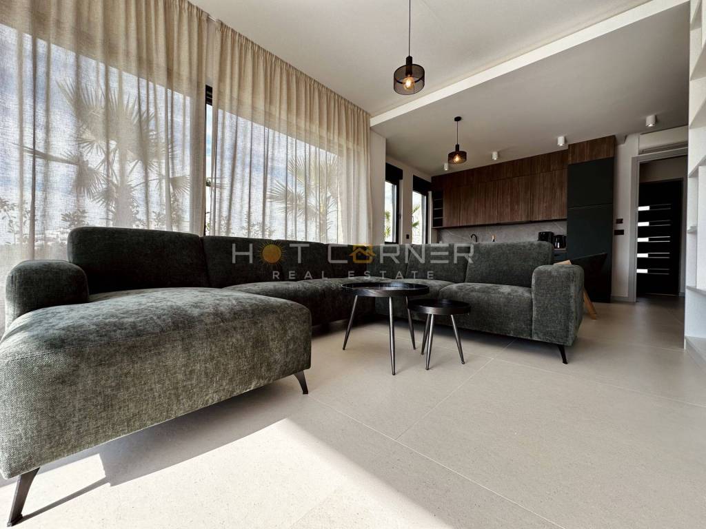 In ruhiger und äußerst attraktiver Lage, nur 200 Meter vom Meer entfernt, stehen drei luxuriöse Reihenhäuser zum Verkauf, vollständig möbliert und sofort bezugsfertig, mit offenem Meerblick.