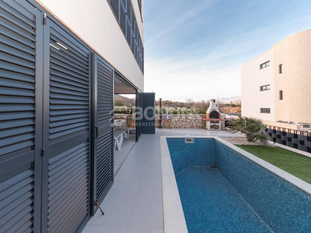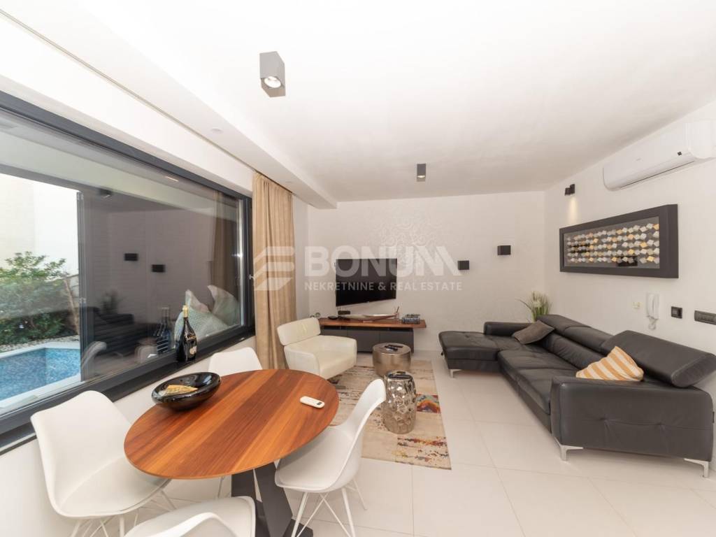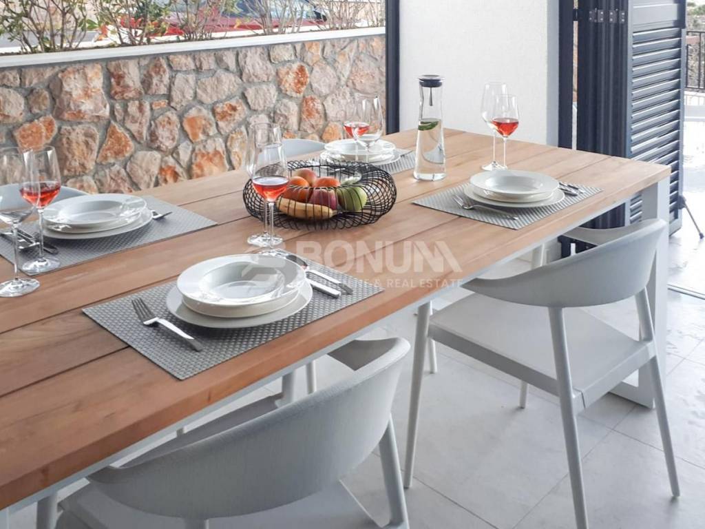 Zum Verkauf steht eine moderne, komplett möblierte Wohnung in Vinjerac, gelegen im Erdgeschoss eines Wohngebäudes, in ausgezeichneter Lage nur 150 m vom Meer und Strand entfernt. Diese Immobilie eignet sich ideal für den Urlaub, zur touristischen Vermietung oder zum ganzjährigen Wohnen.