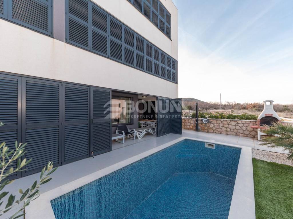 Vinjerac ist ein charmantes kleines dalmatinisches Dorf, bekannt für sein kristallklares Meer, Ruhe und authentisches mediterranes Ambiente. Es ist gut angebunden und liegt etwa 35–40 km von Zadar, ca. 25–30 km vom Nationalpark Paklenica sowie rund 30–35 km vom Flughafen Zadar (Zemunik) entfernt – ideal sowohl zur Eigennutzung als auch als Investition für die Ferienvermietung.