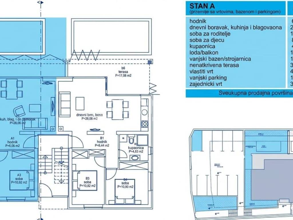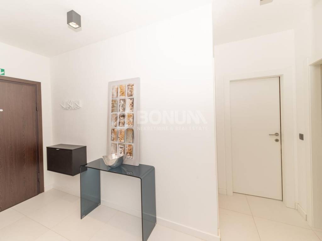 Die Wohnung besteht aus einem Flur, einer Küche, einem Wohnzimmer mit Essbereich, einem Badezimmer, zwei Schlafzimmern sowie einer Loggia und hat eine gesamte Nutzfläche von 72,63 m². Zur Wohnung gehört außerdem ein privater Parkplatz, was besonders in den Sommermonaten ein großer Vorteil ist.