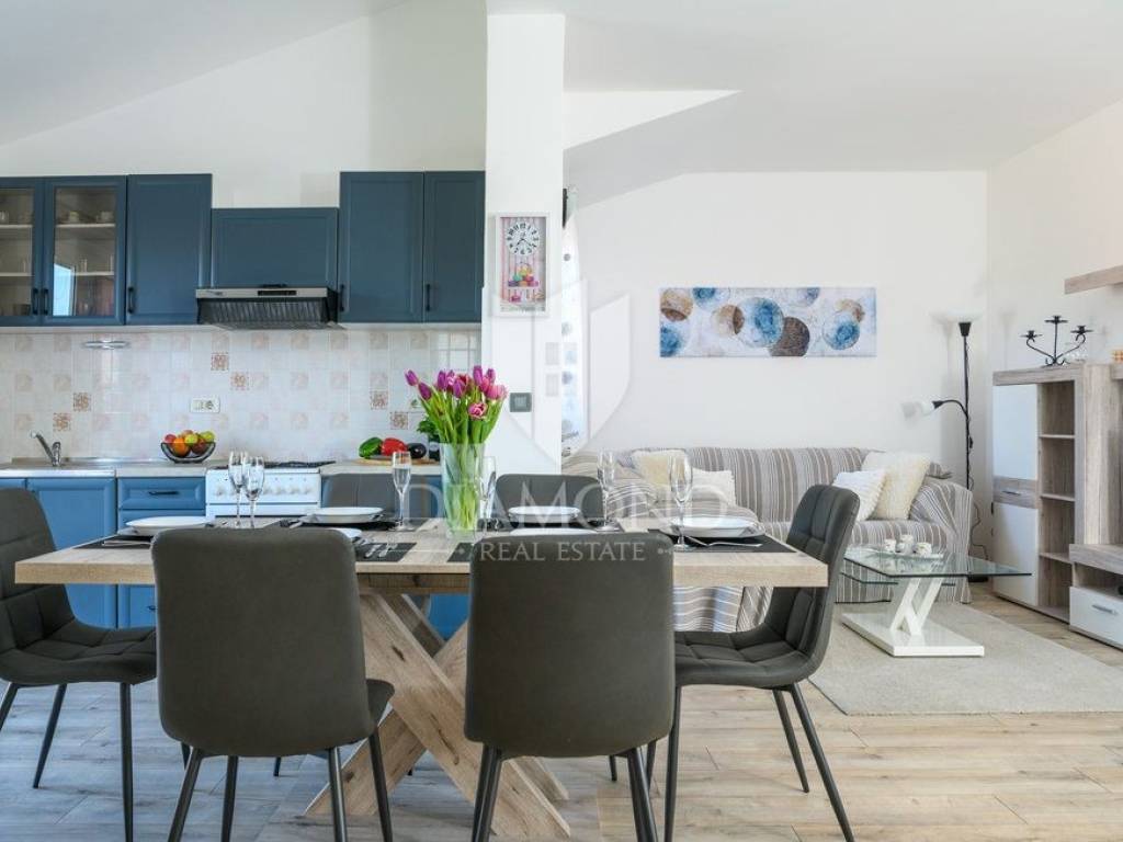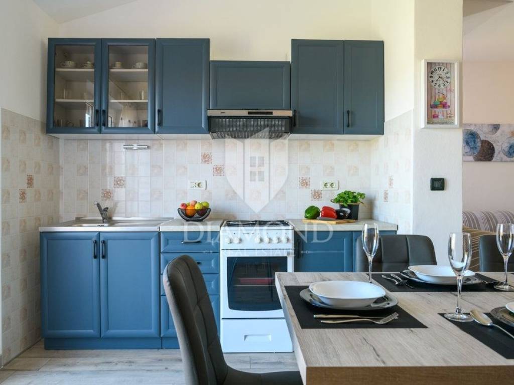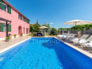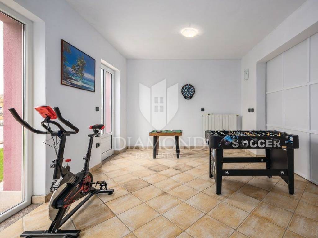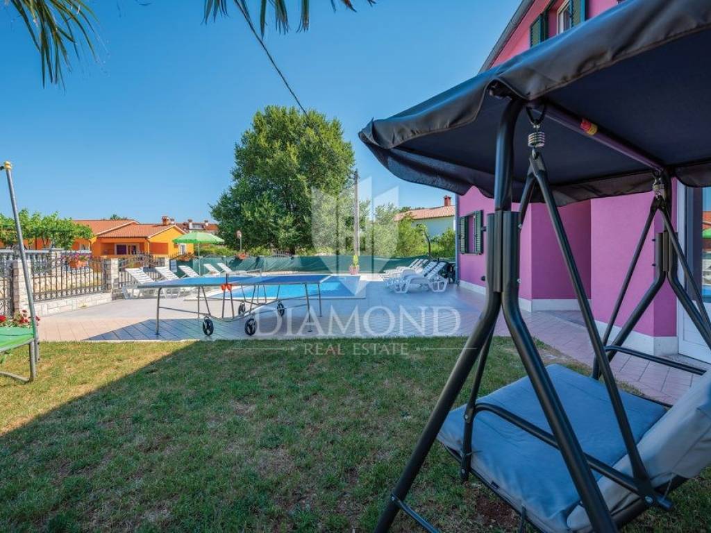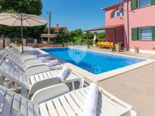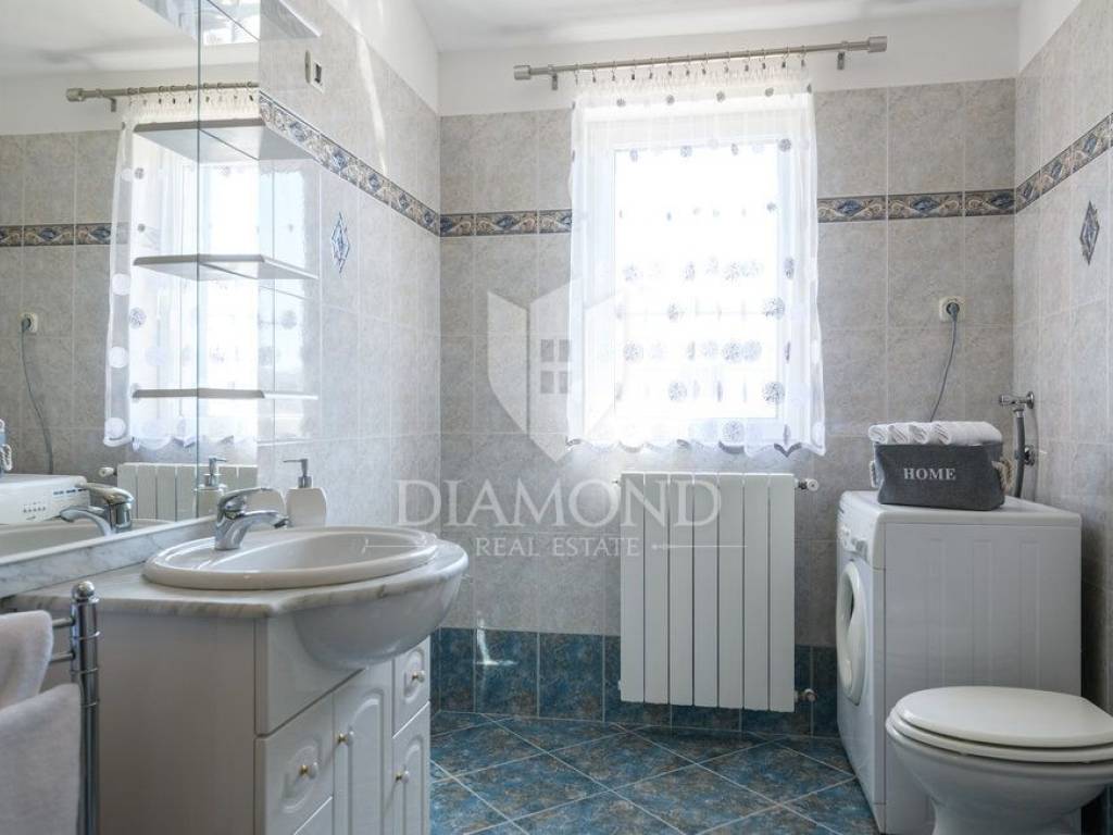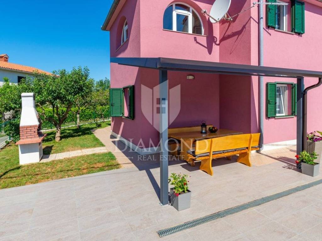 Wir verkaufen dieses geräumige Ferienhaus mit Swimmingpool in einem attraktiven Dorf, nur 4 km vom Zentrum von Labin entfernt. Das Haus ist als zweistöckiges Gebäude mit einer Gesamtfläche von 243 m2 konzipiert. Es besteht aus zwei Wohnungen. Die Wohnung im Erdgeschoss von 125 m2 besteht aus einer Küche mit Speisekammer, einem Esszimmer und einem gemütlichen Wohnzimmer mit geschlossenem Holzkamin. Es gibt auch ein Badezimmer und ein Schlafzimmer. Das Erdgeschoss ist auch mit der Garage und dem Heizraum verbunden. Im ersten Stock befindet sich eine zweite Wohnung mit einer Größe von 118 m2, die aus einem Wohnzimmer mit Zugang zu einem Balkon, einer voll ausgestatteten Küche, einem Schlafzimmer mit eigenem Bad sowie drei weiteren Schlafzimmern und einem Badezimmer besteht. Zwei Schlafzimmer haben Zugang zu einem geschlossenen Balkon. Innerhalb des Hauses gibt es auch einen separaten Raum mit externem Eingang, der in ein Fitnessstudio umgewandelt wurde. Der Hof ist landschaftlich gestaltet, gepflegt und vollständig eingezäunt, was die Ruhe und Privatsphäre des Anwesens gewährleistet. Der Hof umfasst 1079 m2 mit gepflanzten Obstbäumen und Zierpflanzen, und es gibt auch einen schönen Swimmingpool von 32 m2. Parkplätze, ein kleiner Kinderspielplatz und schöne Grünflächen sind vorhanden. Neben dem Haus gibt es auch ein besonderes Nebenwohngebäude, bestehend aus einem Schlafzimmer mit Bad, einer voll ausgestatteten Küche und einem gemütlichen Wohnzimmer mit einem besonderen antiken offenen Kamin. Das Haus ist das ganze Jahr über zum Wohnen und Verweilen geeignet - im ganzen Haus wurde eine Zentralheizung installiert, Klimaanlagen wurden installiert und holzbefeuerte Kamine sorgen für zusätzliche Atmosphäre. Das Anwesen hat eine ausgezeichnete Lage, im neueren Teil des Dorfes ist es von Ferienhäusern und Einfamilienhäusern umgeben. Es liegt 4 km vom Zentrum von Labin und 8 km von den schönen Stränden und dem Meer in Rabac entfernt, das bei Touristen beliebt ist.