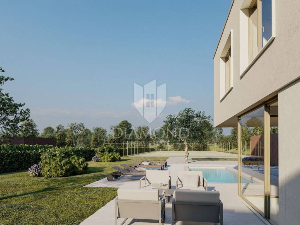 Labin, Umgebung, moderne Villa mit Pool, Neubau. Wenn Sie auf der Suche nach einem perfekten Urlaubsort sind, ist diese schöne Villa mit Pool in einem Neubau in der Nähe von Labin ideal für Sie. Die Villa mit einer Gesamtfläche von 283 Quadratmetern Wohnfläche liegt auf einem 2000 Quadratmeter großen Garten. Die Villa besteht aus einem Erdgeschoss und einem Obergeschoss. Das Erdgeschoss dieser schönen Villa besteht aus einem großzügigen offenen Bereich, der eine Küche, ein Esszimmer und ein Wohnzimmer umfasst. Im Erdgeschoss gibt es auch einen Raum für eine Sauna, von dem aus wir auf eine überdachte Terrasse mit Sommerküche und einem beheizten Swimmingpool mit einer Gesamtfläche von 48 m² gelangen. Im ersten Stock dieser Villa haben wir 4 Schlafzimmer, jedes mit eigenem Bad. Das Problem der Heizung und Kühlung wurde durch installierte Klimaanlagen, eine Fußbodenheizung mit Gebläsekonvektoren und installierte Solarkraftwerke zur Reduzierung des Energieverbrauchs gelöst. Die Villa liegt in einer ruhigen Straße und dennoch in der Nähe aller lebensnotwendigen Einrichtungen. Von der Stadt Labina aus ist die Villa zehn Minuten entfernt, während der erste Strand nur eine Viertelstunde Autofahrt entfernt ist.