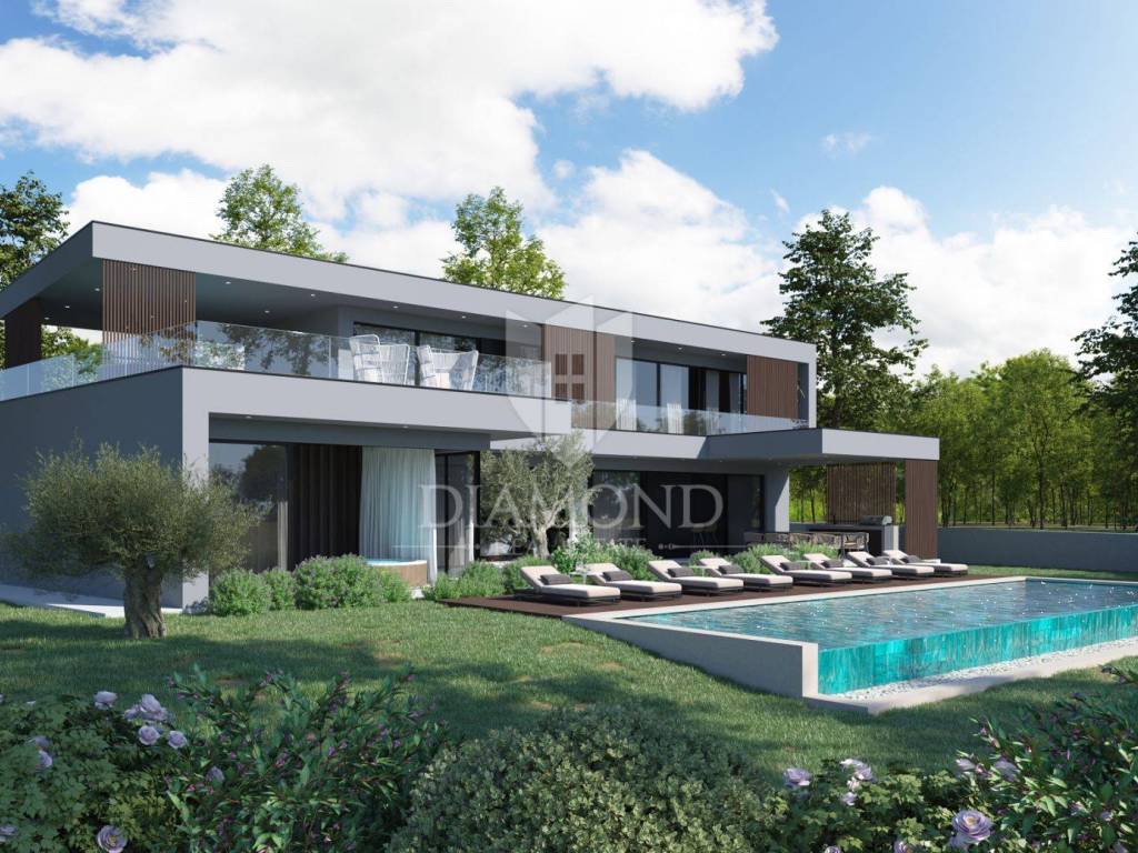 Es wurde ein Konzeptprojekt für ein Ferienhaus in modernem Design mit Überlaufpool erstellt.