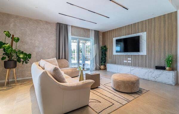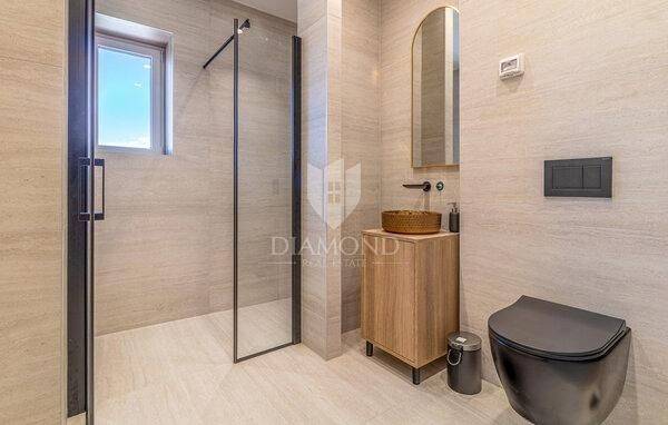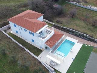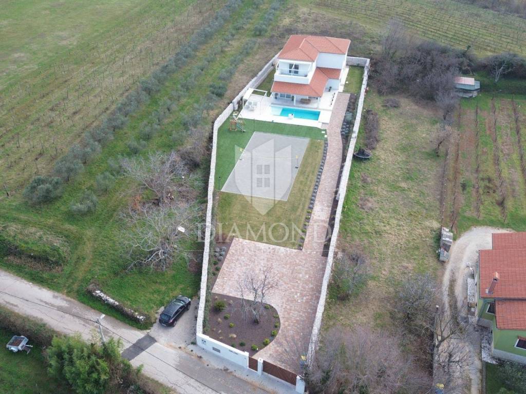 Diese beeindruckende Villa nahe dem Zentrum von Barban bietet das ultimative Luxusurlaubserlebnis in einer wunderschönen Lage im Zentrum der istrischen Halbinsel. Mit einer Fläche von 320 m² liegt es auf einem großzügigen Grundstück von 1750 m² und ist ideal für einen Urlaub abseits vom Lärm der Stadt, bei dem Sie Komfort und Privatsphäre genießen möchten. Das Haus verfügt über eine Gesamtfläche von 320m2 und ist als zweigeschossiges Gebäude konzipiert. Das Erdgeschoss umfasst ein geräumiges offenes Wohnzimmer, das mit der Küche und dem Esszimmer verbunden ist und durch Glastüren einen großen Ausgang zur Terrasse mit herrlichem Blick auf den angelegten Garten und den Swimmingpool bietet. Außerdem gibt es zwei gemütliche Schlafzimmer mit jeweils eigenem Badezimmer und ein weiteres separates WC. Die erste Etage des Hauses besteht aus zwei Schlafzimmern mit eigenen Bädern, einem Fitnessraum mit Zugang zu einer Terrasse zum Entspannen und Trainieren, einer Sauna für ein komplettes Wellness-Erlebnis und einem großen Abstellraum. Die Heizung und Kühlung aller Räume im Haus wird durch den Einbau eines hochmodernen Fan-Coil-Systems mit Anschluss an eine Wärmepumpe gewährleistet. Der Hof ist komplett eingezäunt. Es umfasst einen Volleyballplatz für Familienspaß und einen 50 m² großen Swimmingpool mit einem Loungebereich zum Entspannen und Genießen der Sonne. Die Villa ist mit den modernsten Geräten und Materialien ausgestattet und gewährleistet maximalen Komfort und Luxus. Es ist ideal für alle, die in Ruhe und Privatsphäre entspannen und dennoch in der Nähe aller städtischen Annehmlichkeiten sein möchten, was es auch ideal für die Vermietung an Touristen macht.