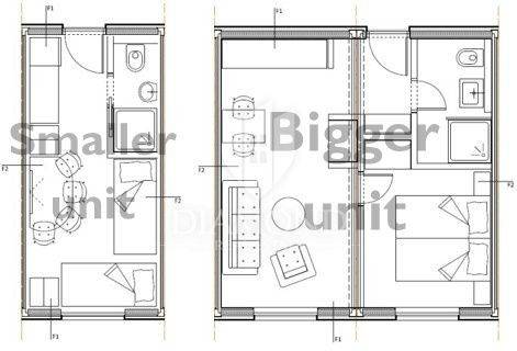 Diese als Hotel konzipierte Anlage würde 6 größere und 48 kleinere Einheiten, also insgesamt 54 Einheiten für Gäste, umfassen und ist allesamt auf zwei Gebäude aufgeteilt. Die größeren Einheiten sind ca. 36 m² groß und verfügen über ein Wohnzimmer mit kleiner Küche, ein Schlafzimmer und ein Badezimmer, während die kleineren Einheiten ca. 20 m² groß sind und wie ein Studio gestaltet sind.