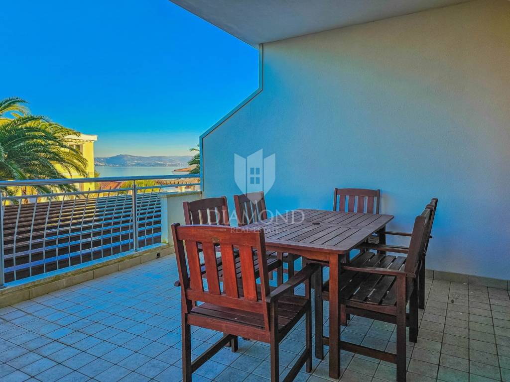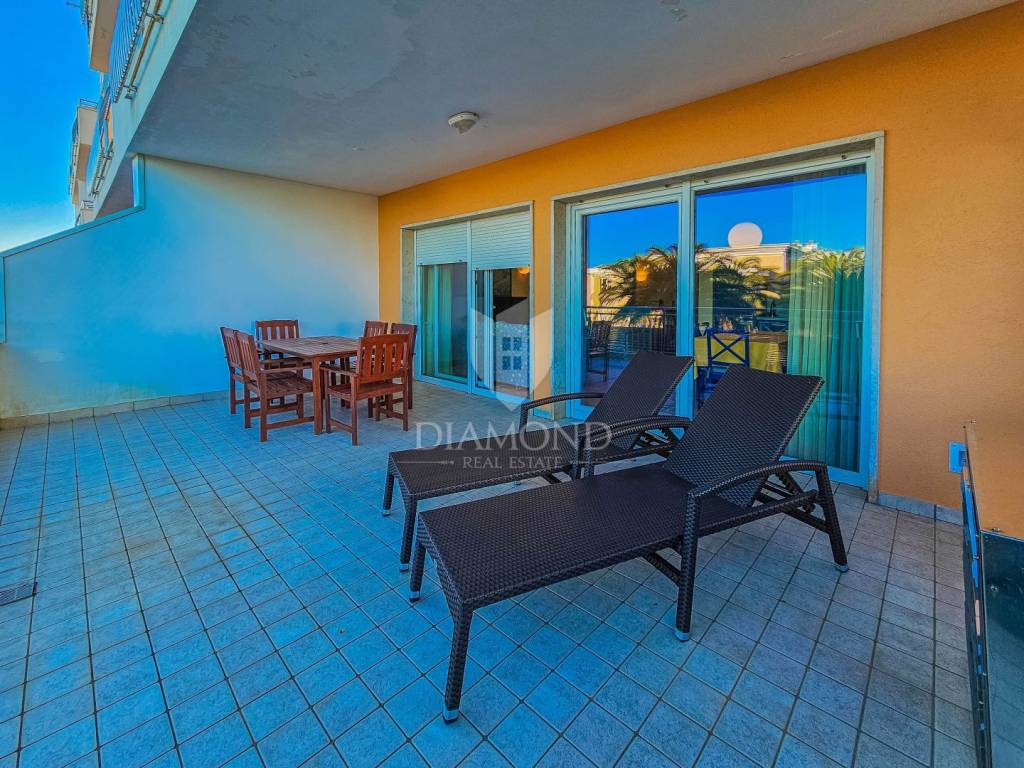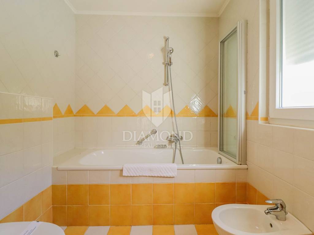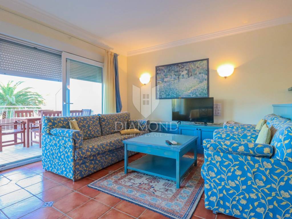 Die Wohnung befindet sich im Hochparterre eines Wohnhauses einer geschlossenen Ferienanlage. Die Gesamtfläche der Wohnung beträgt 115 m2. Es besteht aus einem Wohnzimmer mit Küche und Esszimmer, einem Badezimmer, 2 Schlafzimmern, eines davon ist ein Hauptschlafzimmer mit eigenem Bad, einem Flur und einer Gästetoilette. Vom Wohnzimmer gelangt man auf eine großzügige überdachte Terrasse mit Blick auf das Meer. Die Wohnung ist in ausgezeichnetem Zustand und verfügt über Heizung und Klimaanlage. Verfügt über einen Abstellraum im Keller des Gebäudes. Der Parkplatz befindet sich vor dem Gebäude und der zukünftige Eigentümer kann wählen, ob er einen überdachten Parkplatz zum Preis von 14.000 Euro oder eine Garage zum Preis von 20.000 Euro möchte.
