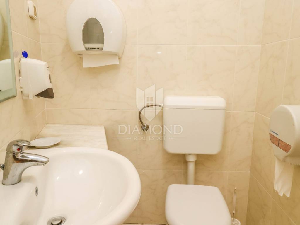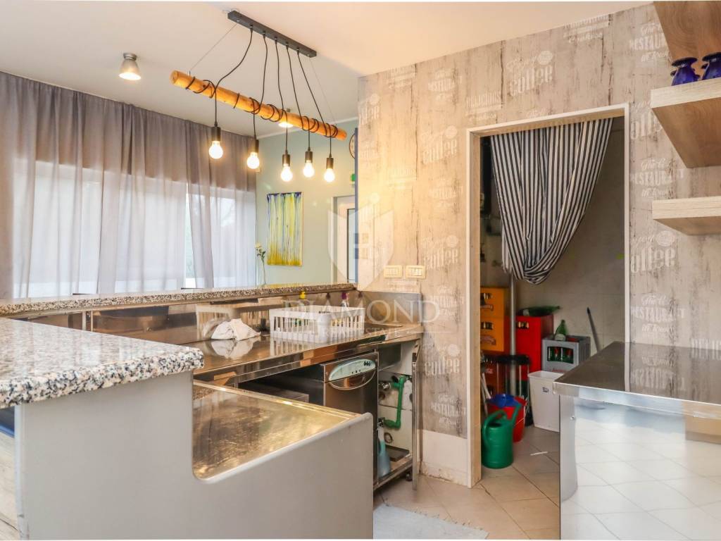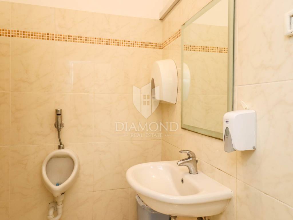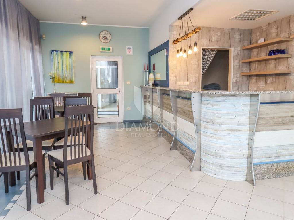 Es befindet sich im Erdgeschoss eines Gebäudes mit mehreren Wohnungen. Die Fläche des Raumes beträgt 58m2 und besteht aus einer zentralen Theke und einem Lagerraum, einem geräumigen und gut beleuchteten Bistro und 2 Toiletten. Der Raum ist über die dazugehörige überdachte Terrasse zugänglich und verfügt außerdem über einen Garten und 2 Parkplätze. Der Geschäftsraum befindet sich in einer attraktiver Lage in der Stadt Umag, nur 600 m von den Umag-Hotels, dem Yachthafen und der Promenade entfernt.