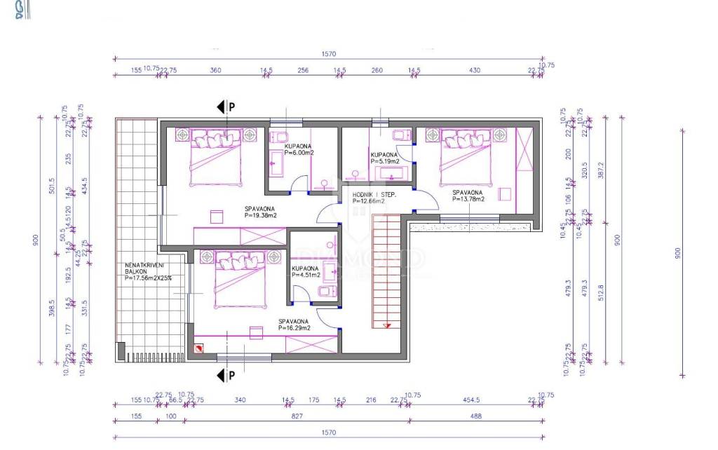 Dieses moderne Haus befindet sich auf einem 410 m² großen Garten, in dem neben dem Haus genügend Platz für einen Kinderspielplatz, zwei Parkplätze, von denen einer überdacht ist, und einen Swimmingpool mit 24 m² großem Sonnendeck ist. Das Haus ist in Erdgeschoss und Obergeschoss mit einer Gesamtwohnfläche von 157m2 aufgeteilt. Das Erdgeschoss des Hauses wird von einem offenen Raum mit einer imaginären Küche mit Essbereich und einem großen Wohnzimmer mit Zugang zu einer überdachten Terrasse und einem Garten dominiert. Neben der Eingangshalle befindet sich ein Badezimmer mit Dusche und ein Raum mit Fitnessraum und Sauna. Vom Wohnzimmer führt uns eine Treppe in den ersten Stock des Hauses, wo sich drei weitere Schlafzimmer mit eigenem Bad befinden, von denen zwei Zugang zu einem Balkon von 17,56 m2 mit Meerblick haben.