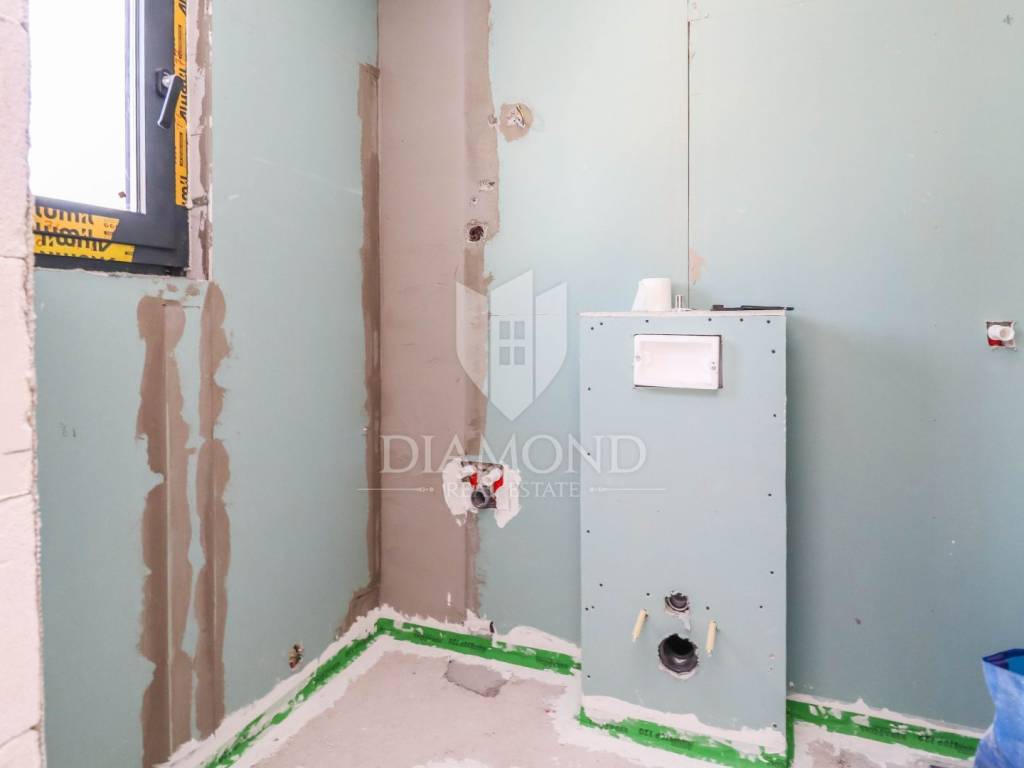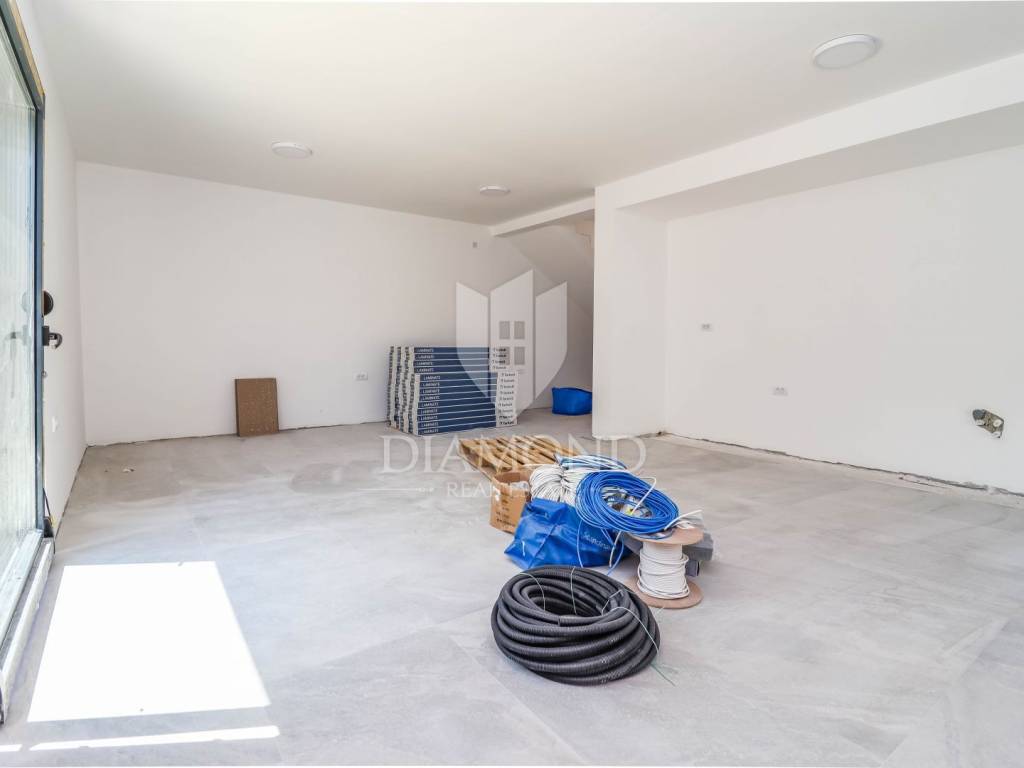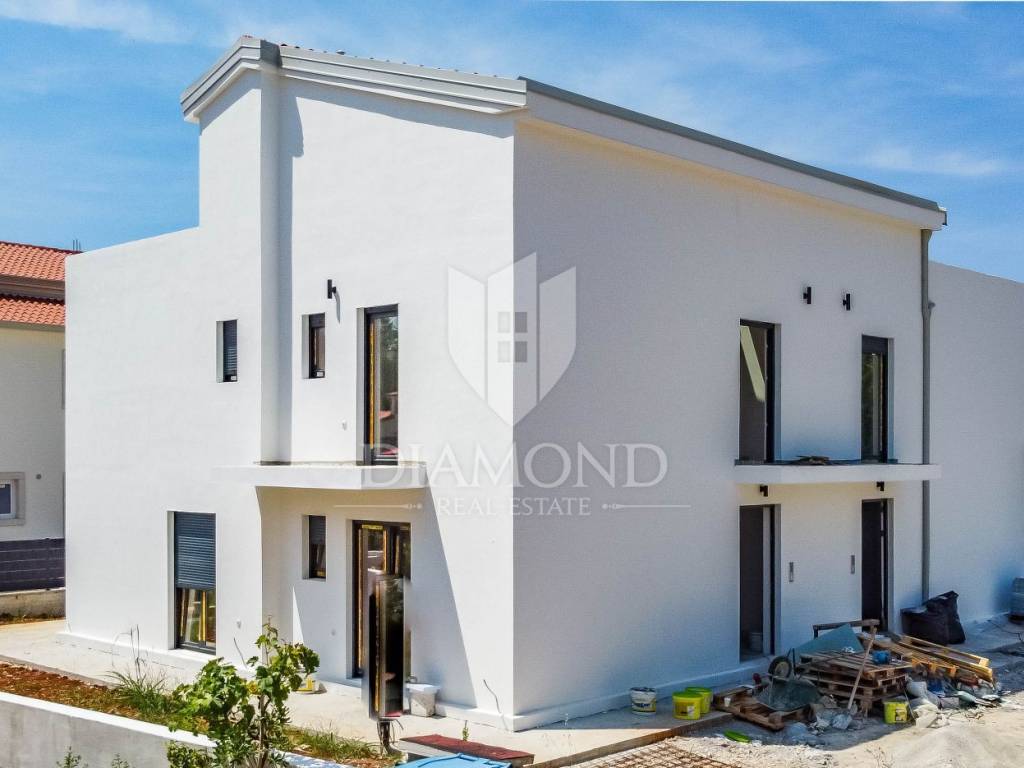 Das Haus erstreckt sich über drei Etagen und hat eine Fläche von 187,93 m2. Das Erdgeschoss des Hauses besteht aus einer Eingangshalle, einer Toilette, einem Schlafzimmer, einer Küche mit Esszimmer und einem Wohnzimmer mit offenem Raumkonzept, von dem aus man Zugang zu einer Terrasse hat, die zum Garten führt. Eine elegante Treppe führt in die zweite Etage, wo sich drei geräumige Schlafzimmer befinden, von denen zwei über ein eigenes Badezimmer verfügen. Dann kommen wir in die dritte Etage, also das Dachgeschoss, in dem sich auch ein geräumiges Schlafzimmer mit eigenem Bad und einer großzügigen Dachterrasse befindet. Die Beheizung des Hauses erfolgt über eine Fußbodenheizung mittels Wärmepumpe, die Kühlung in den Sommermonaten erfolgt über eine Klimaanlage. Das Haus wurde nach dem Smart-House-System gebaut und beim Bau wurden die höchsten europäischen Standards angewendet.